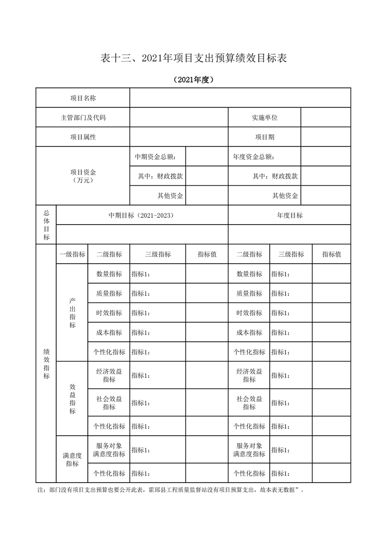 霍邱县工程质量监督站没有财政部门批复绩效目标的项目