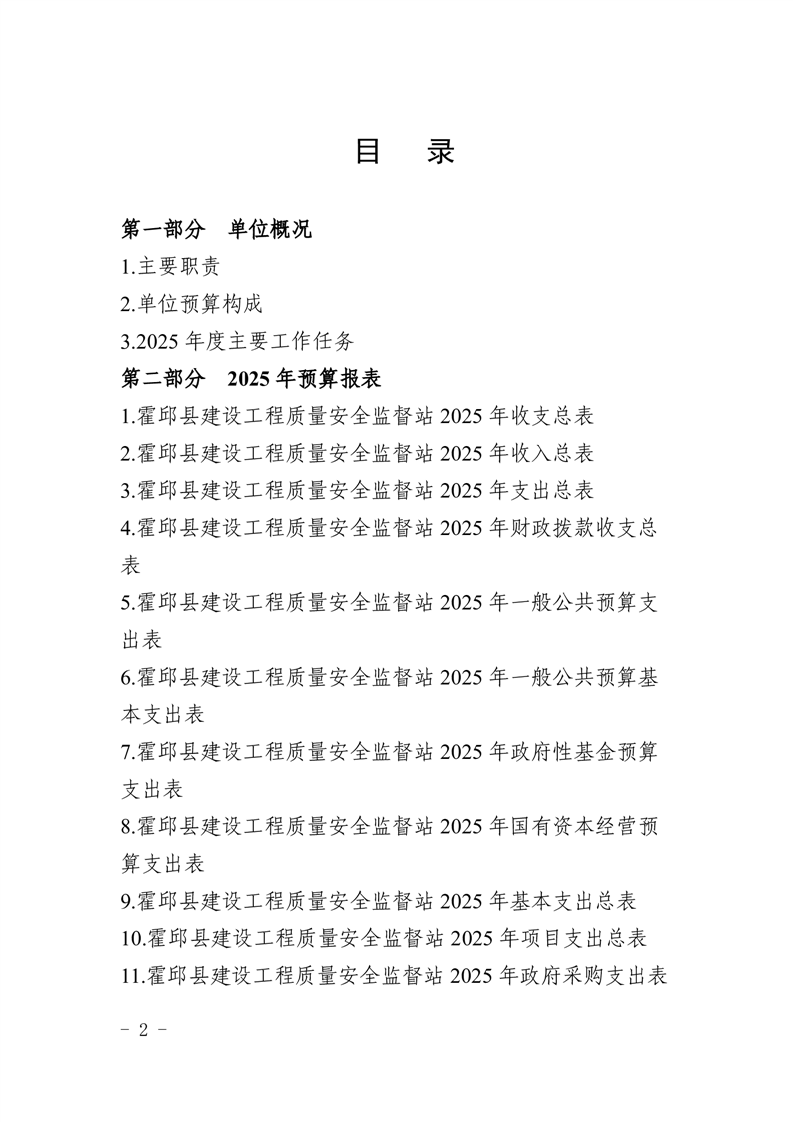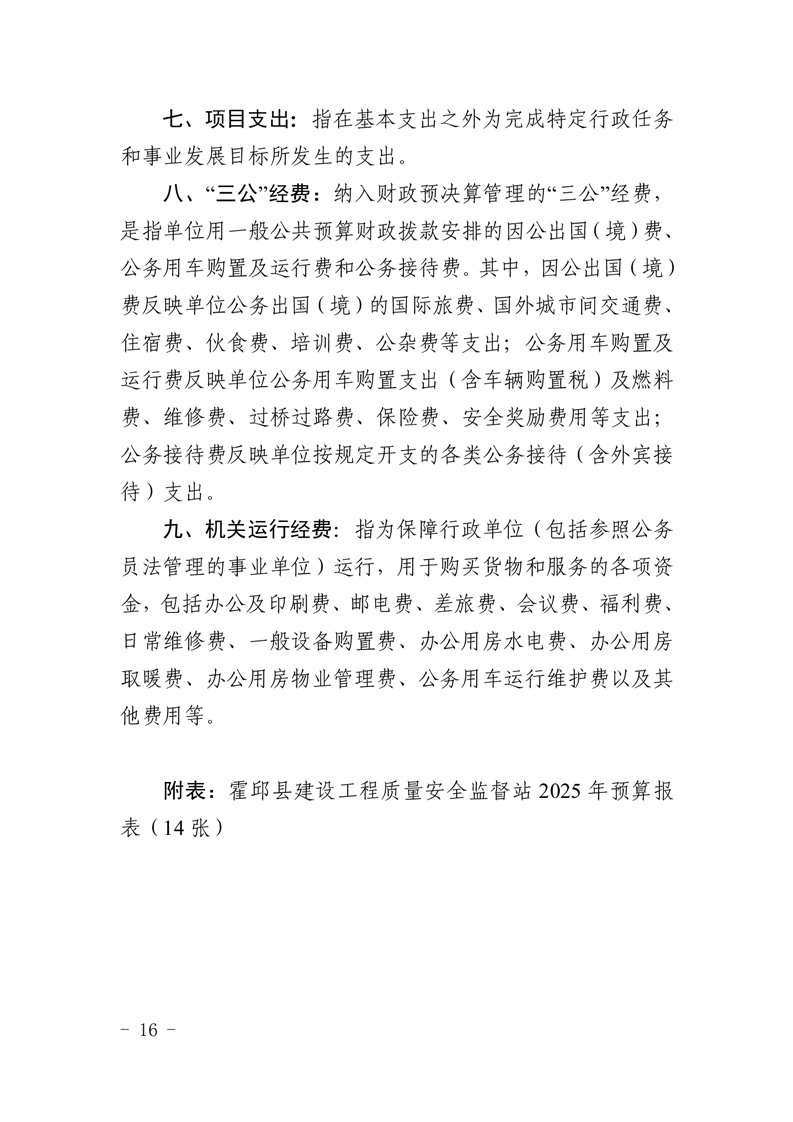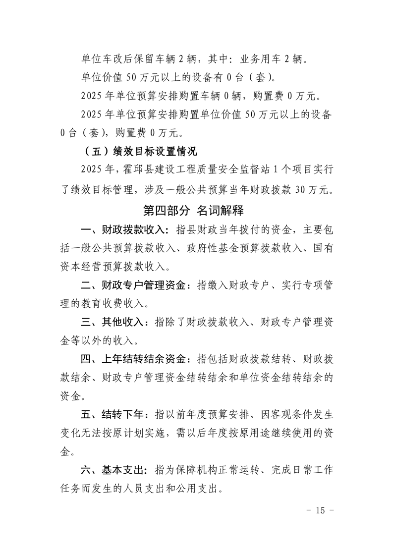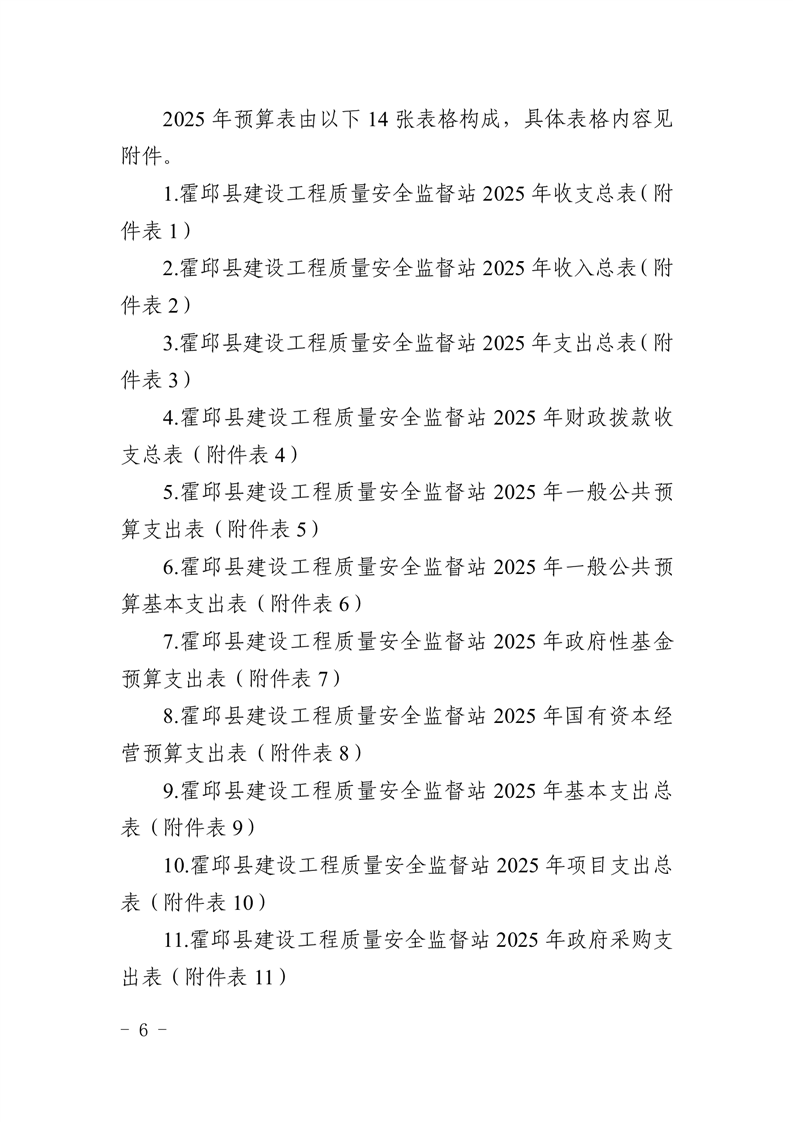 霍邱县建设工程质量安全监督站2025年单位预算公开