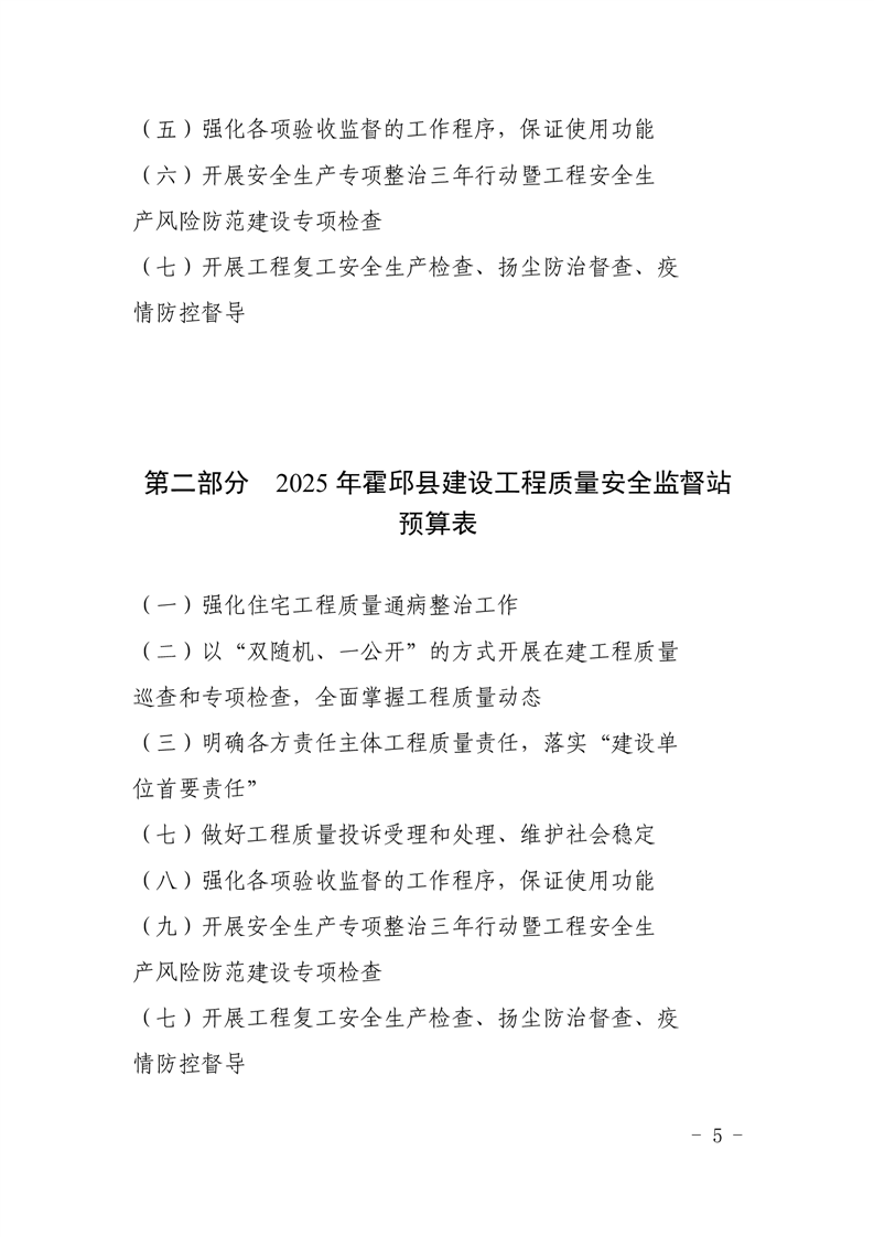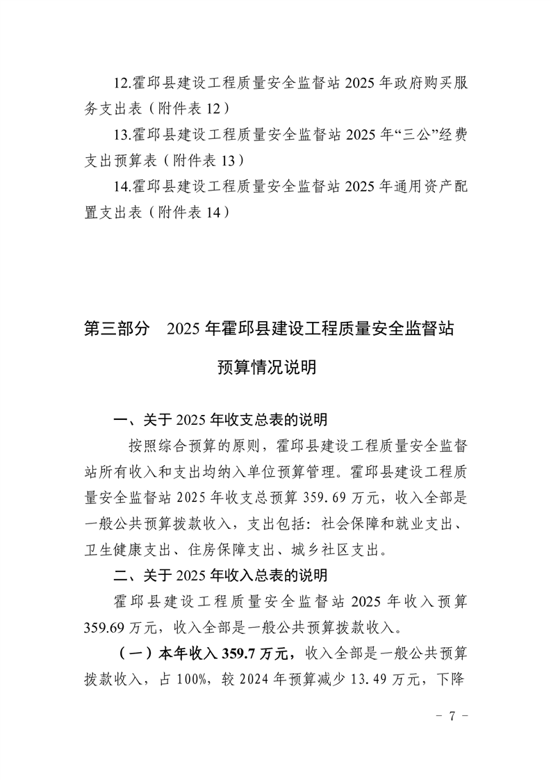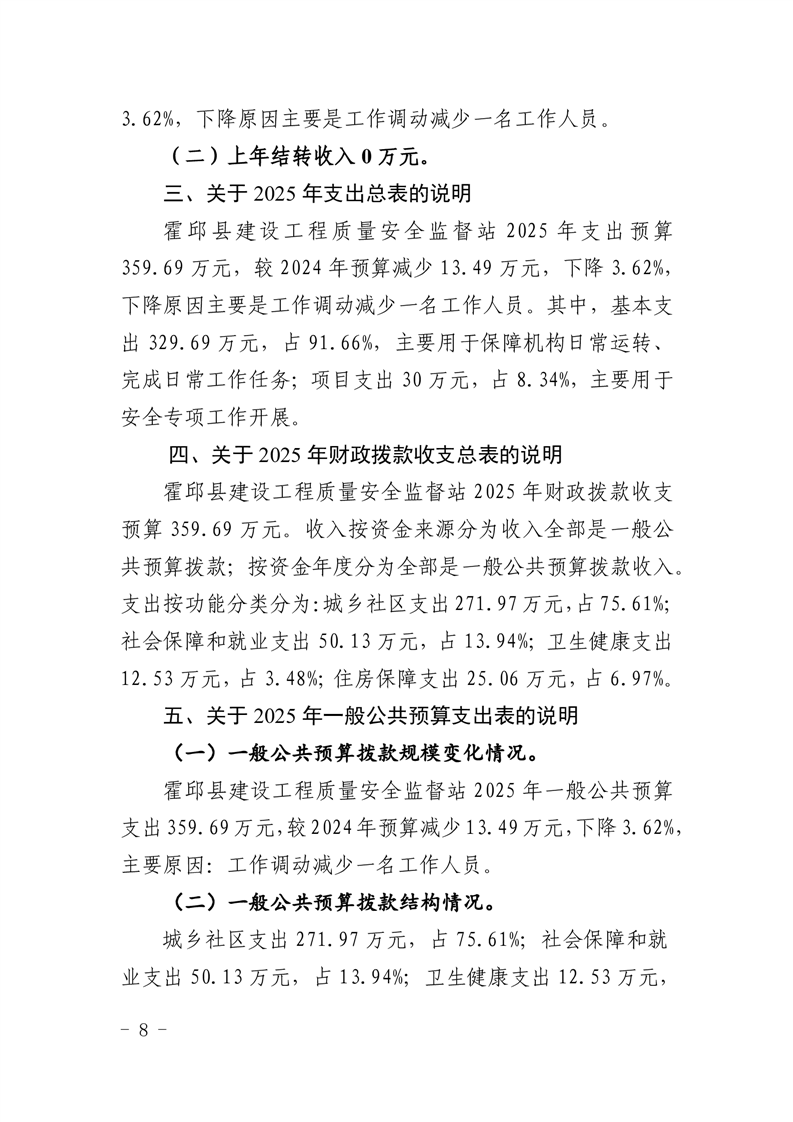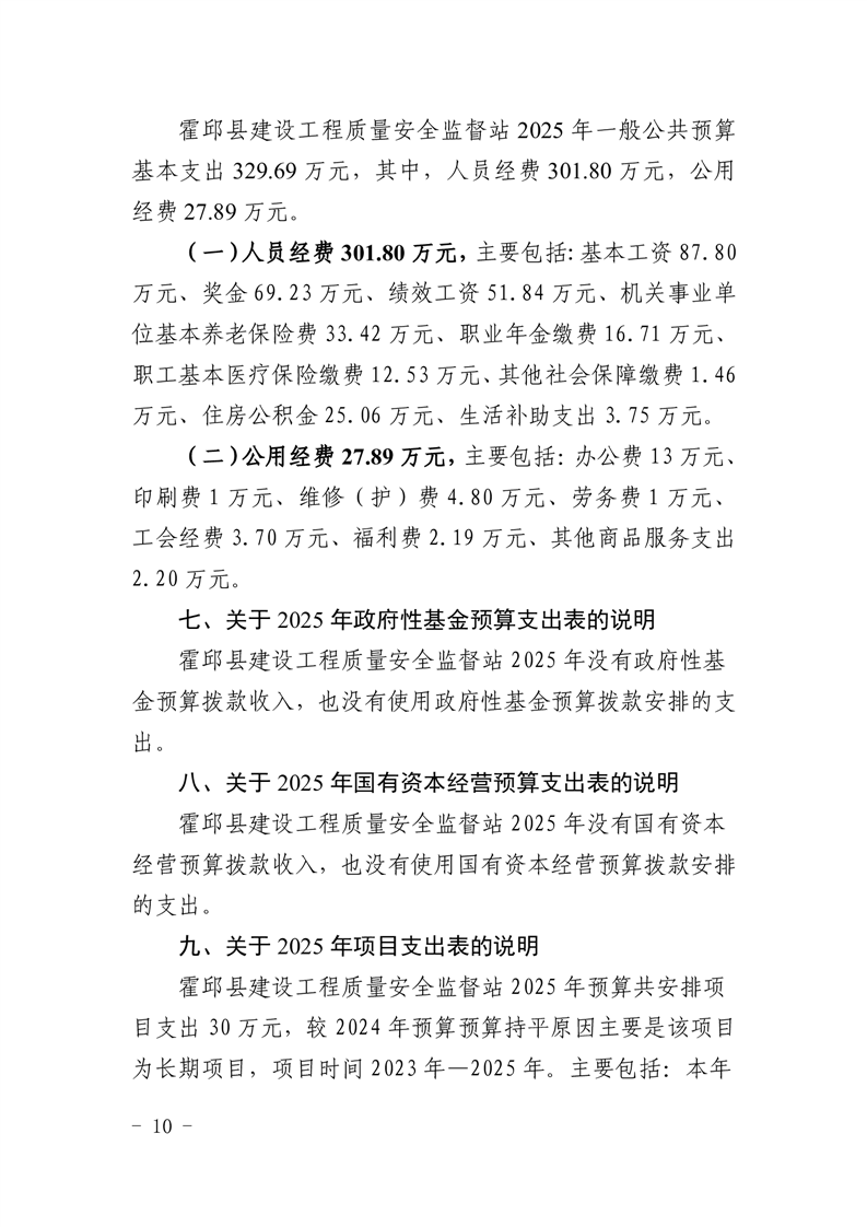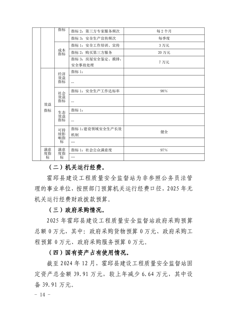 霍邱县建设工程质量安全监督站2025年单位预算公开