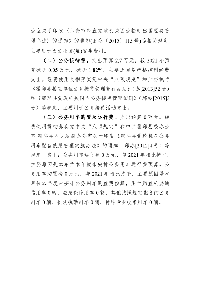 霍邱县林业有害生物防治检疫所2022年三公经费预算公开