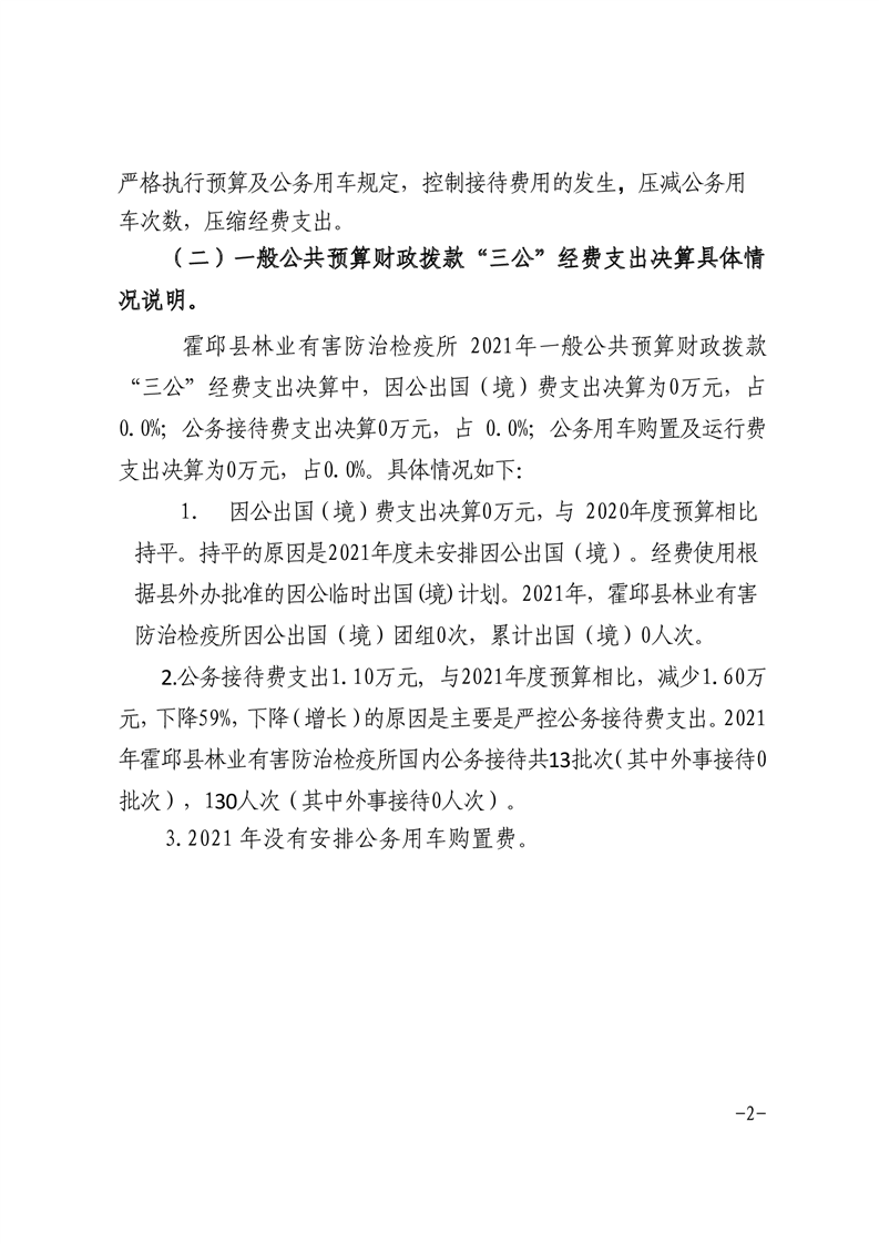 霍邱县林业有害防治检疫所 2021年一般公共预算财政拨款“三公”经费支出决算