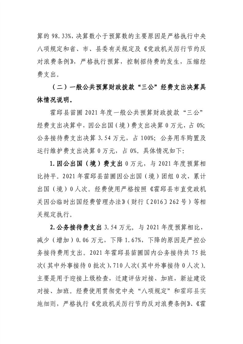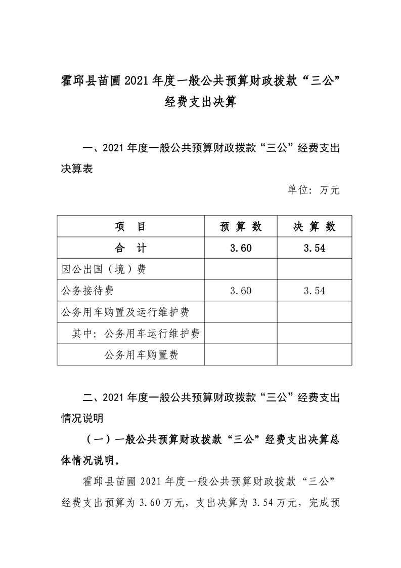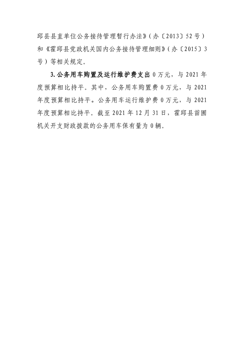 霍邱县苗圃2021年度一般公共预算财政拨款“三公”经费支出决算