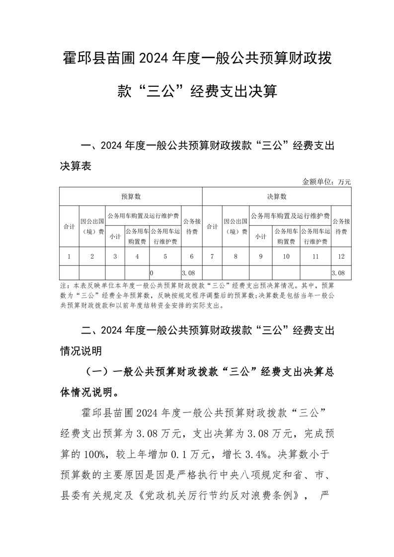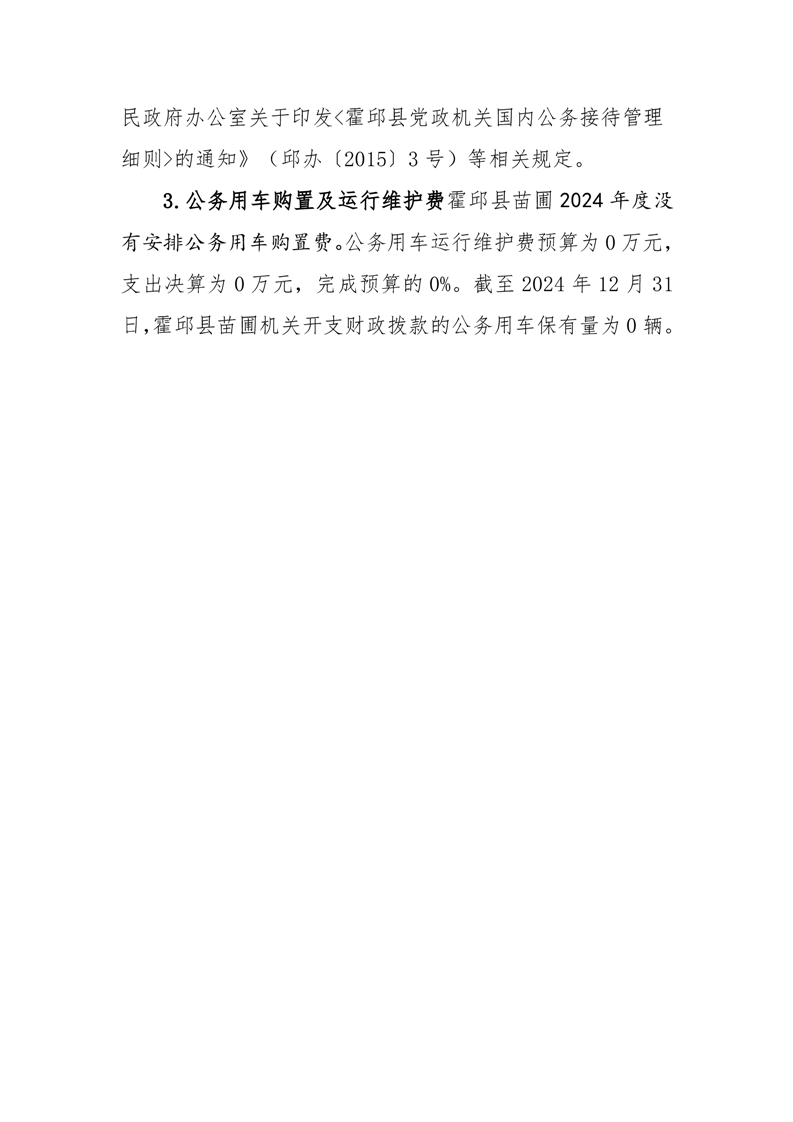 霍邱县苗圃2024年度一般公共预算财政拨款“三公”经费支出决算