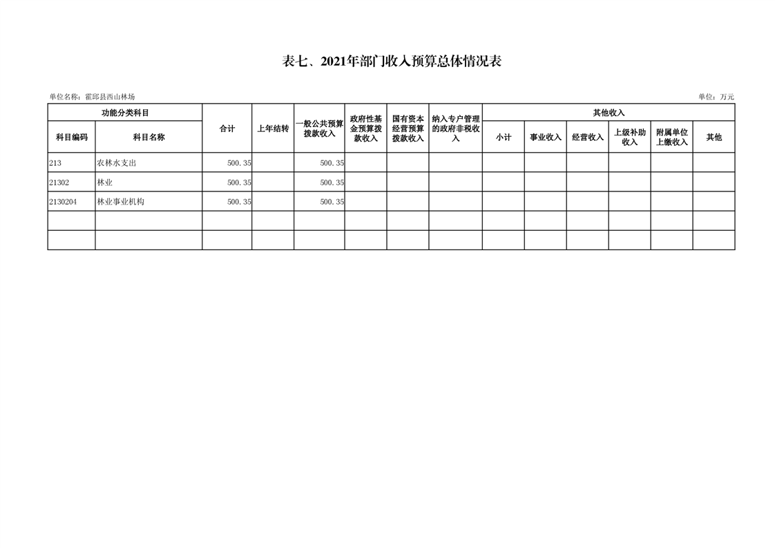 霍邱县西山林场2021年单位预算公开