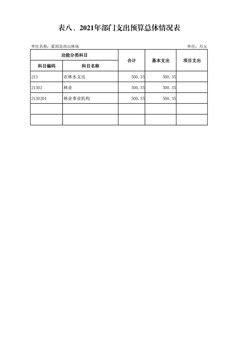 西山林场2021年一般公共预算基本支出500.35万元,具体情况如下: