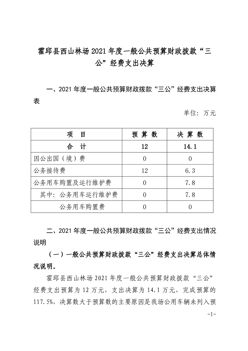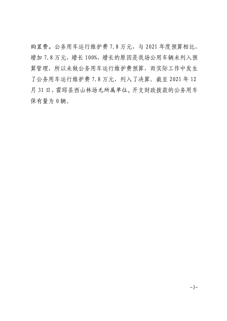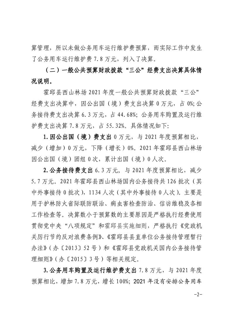 霍邱县西山林场2021年度一般公共预算财政 拨款“三公”经费支出决算
