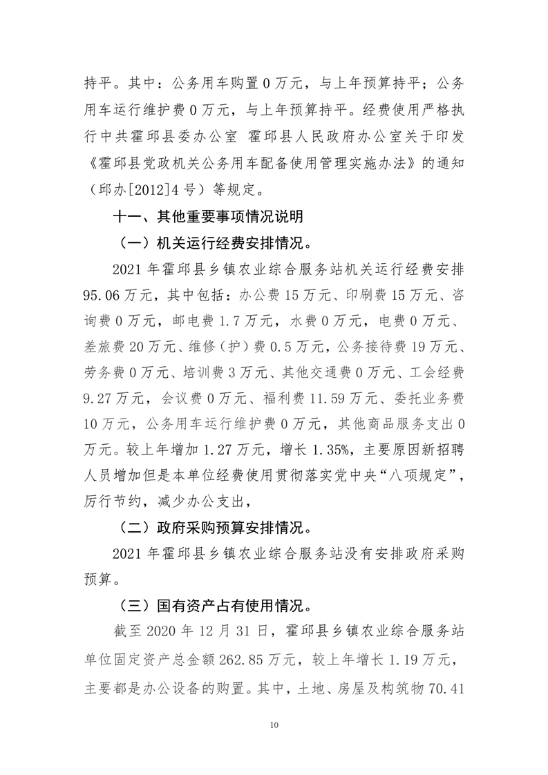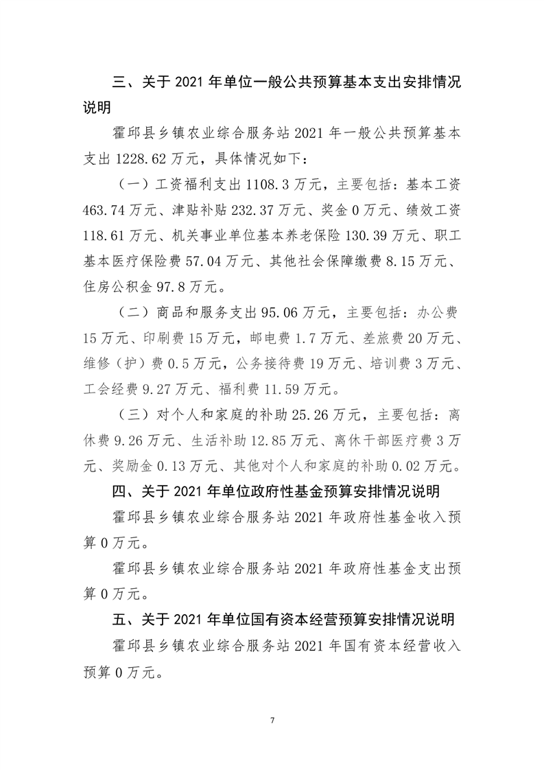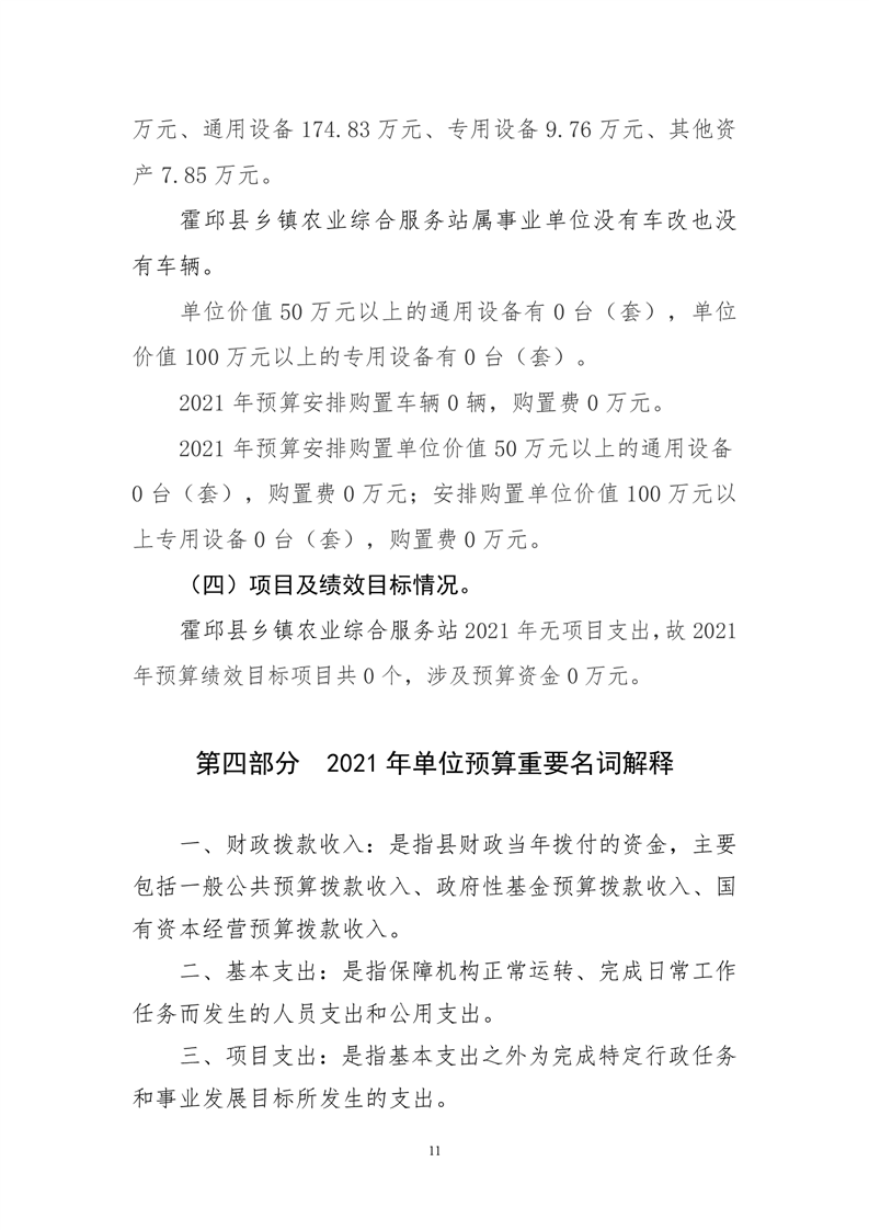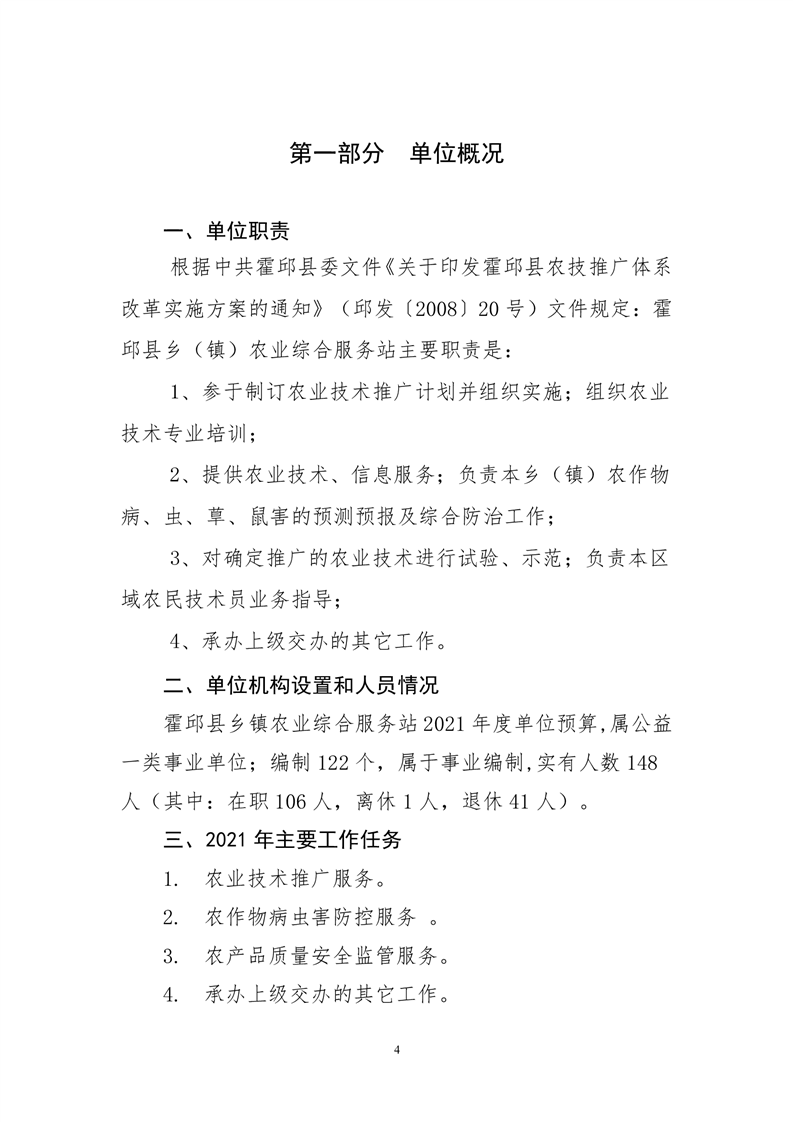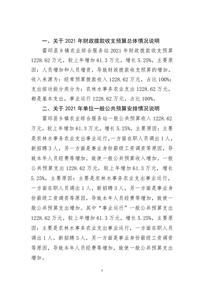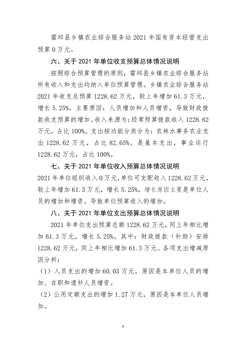 霍邱县乡镇农业综合服务站2021年单位预算公开说明