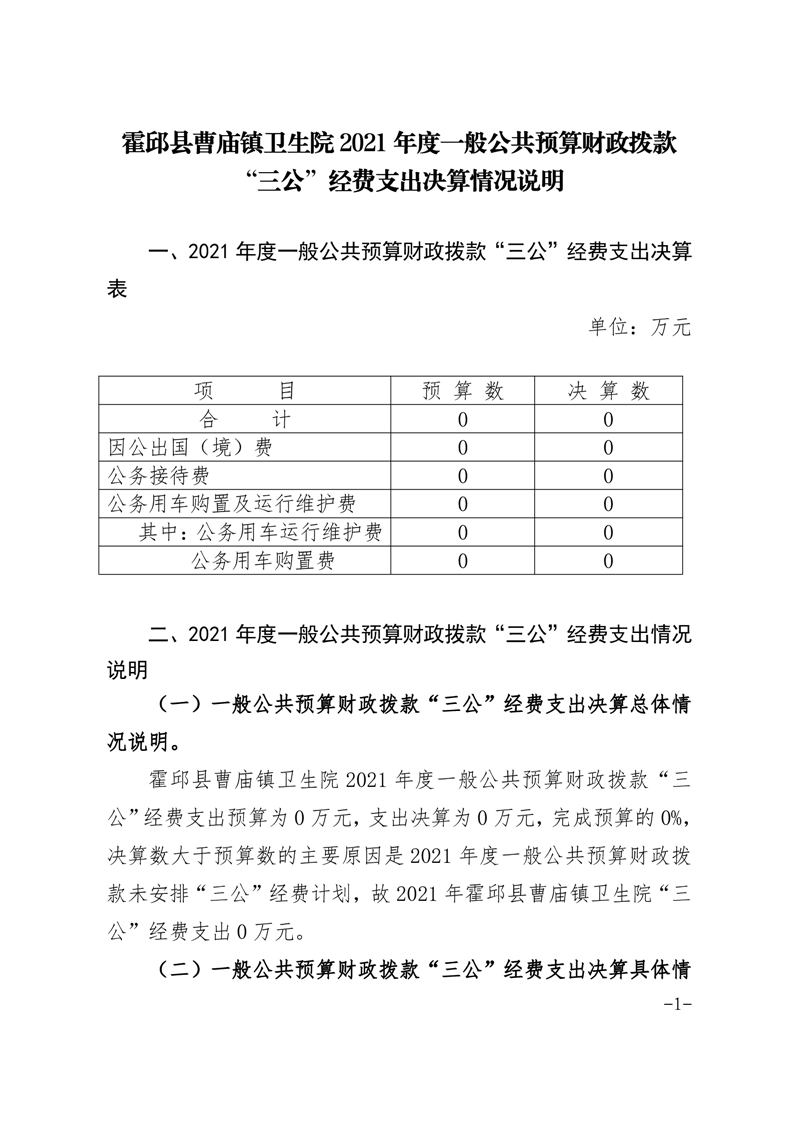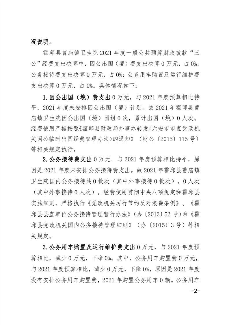 霍邱县曹庙镇卫生院2021年度“三公”经费决算公开
