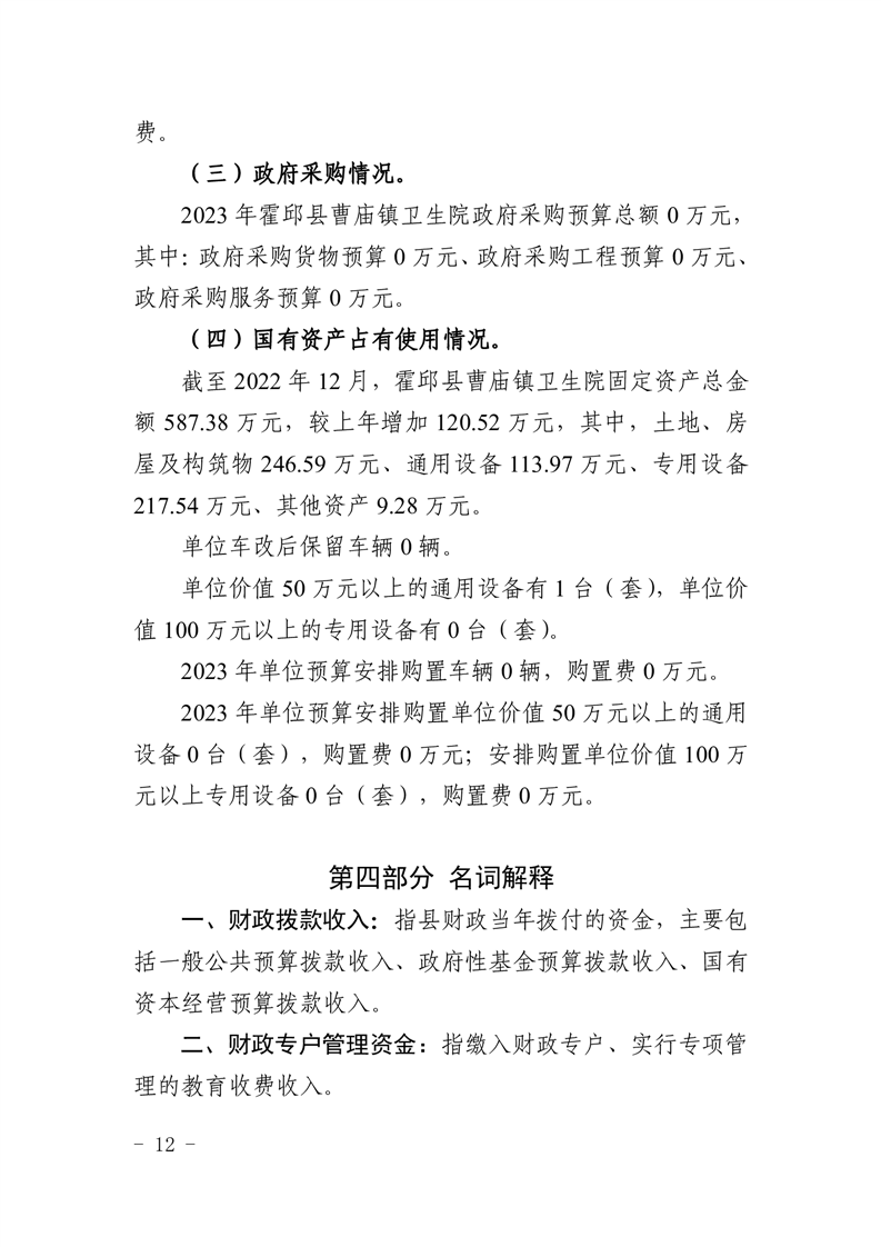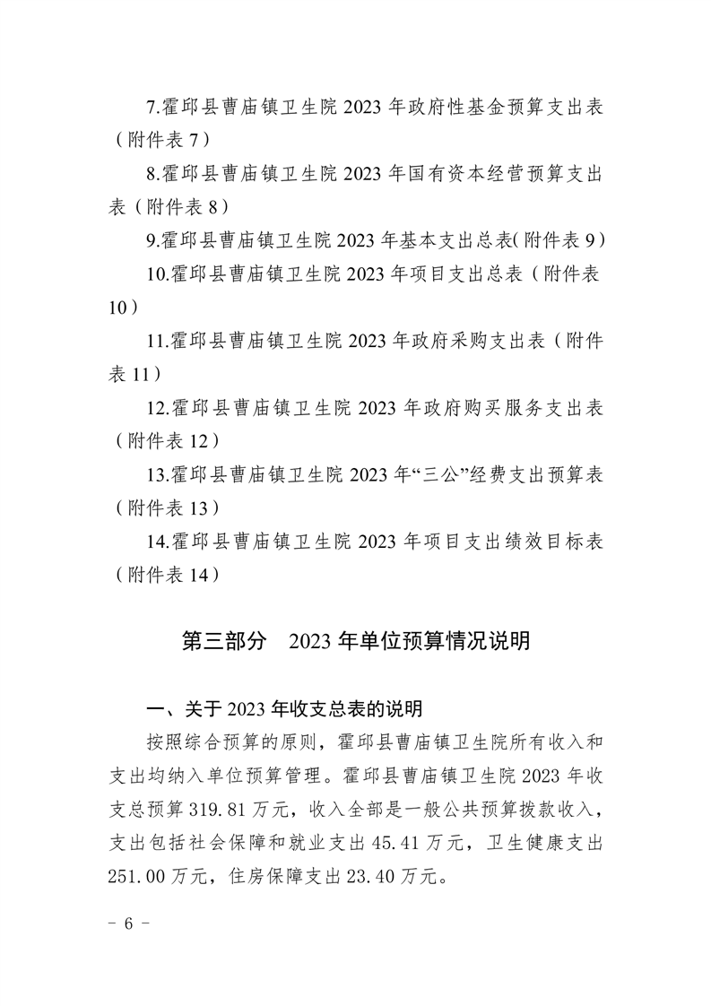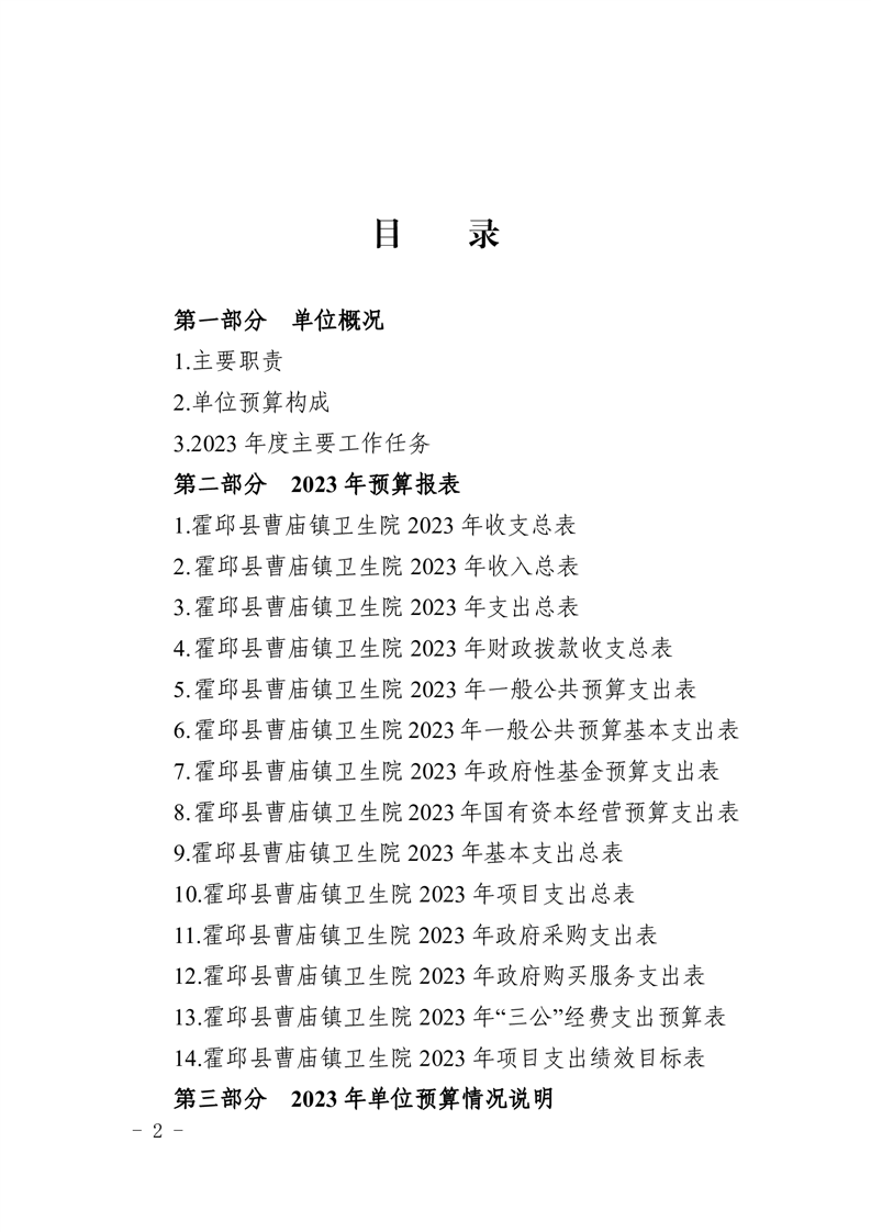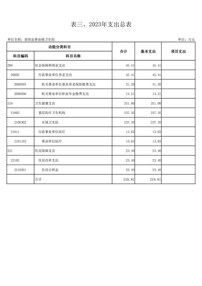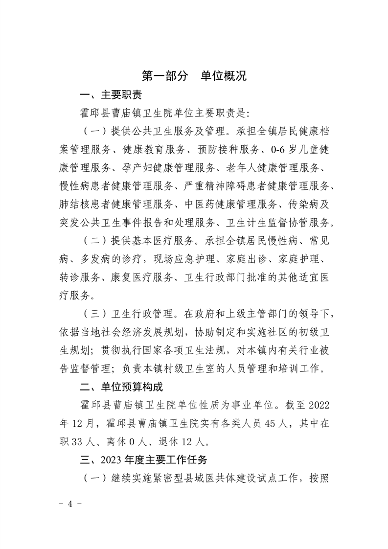 霍邱县曹庙镇卫生院2023年单位预算公开