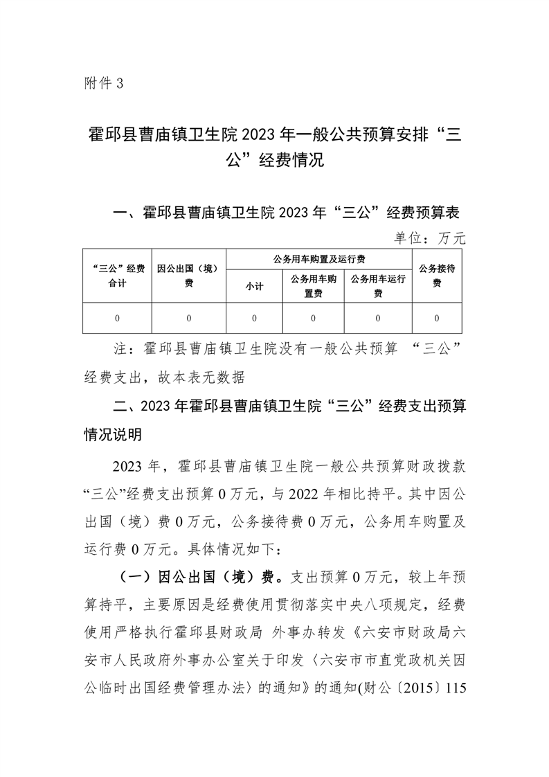 霍邱县曹庙镇卫生院2023年单位一般公共预算安排“三公”经费情况公开