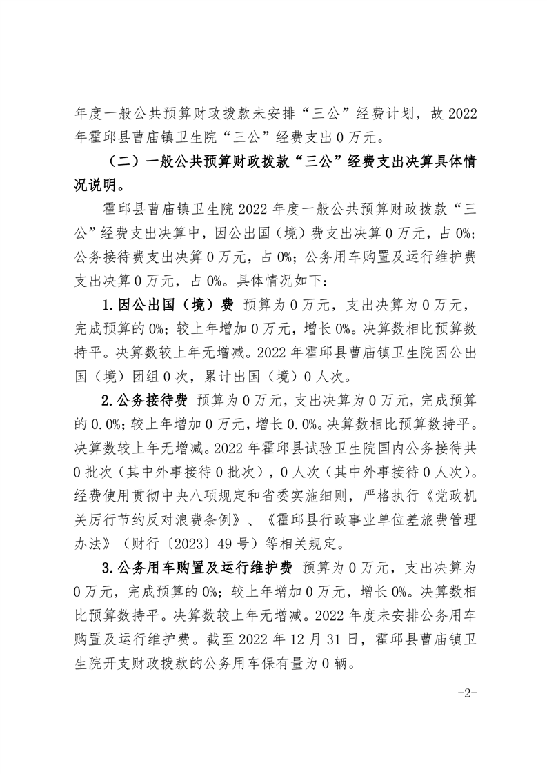 霍邱县曹庙镇卫生院2022年度一般公共预算财政拨款“三公经费”支出决算公开