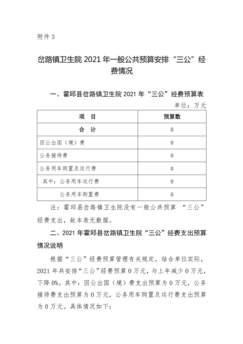 霍邱县岔路镇卫生院2021年一般公共预算安排“三公”经费情况