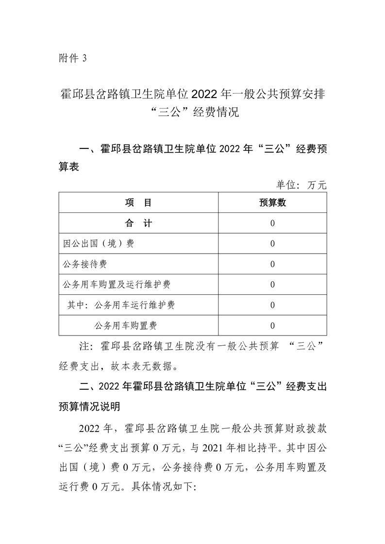 2022年霍邱县岔路镇卫生院“三公”经费预算公开