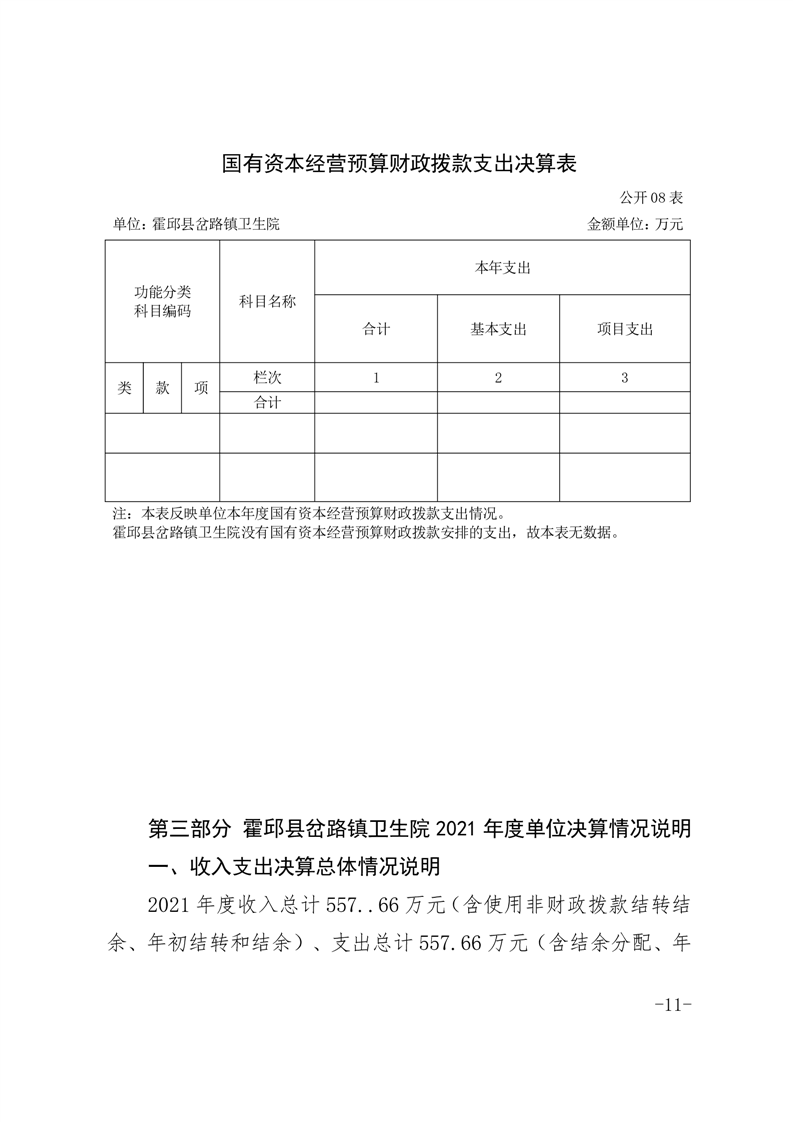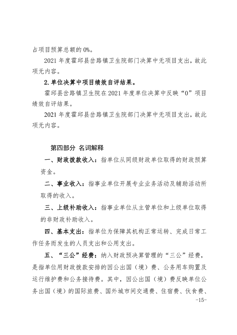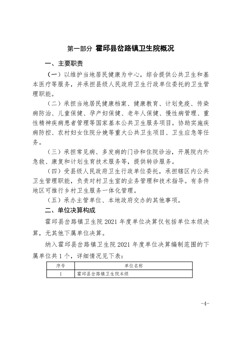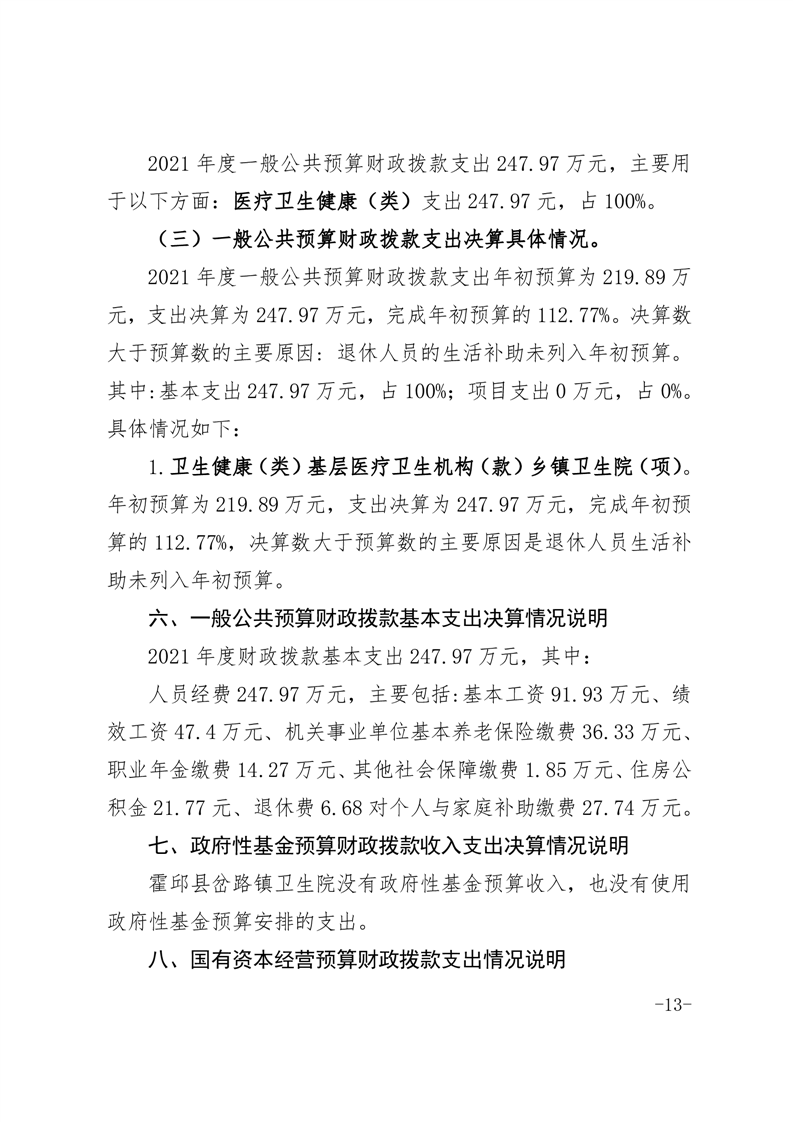 霍邱县岔路镇卫生院2021年度单位决算公开
