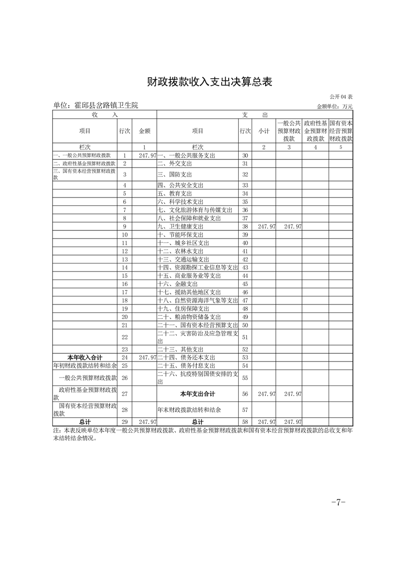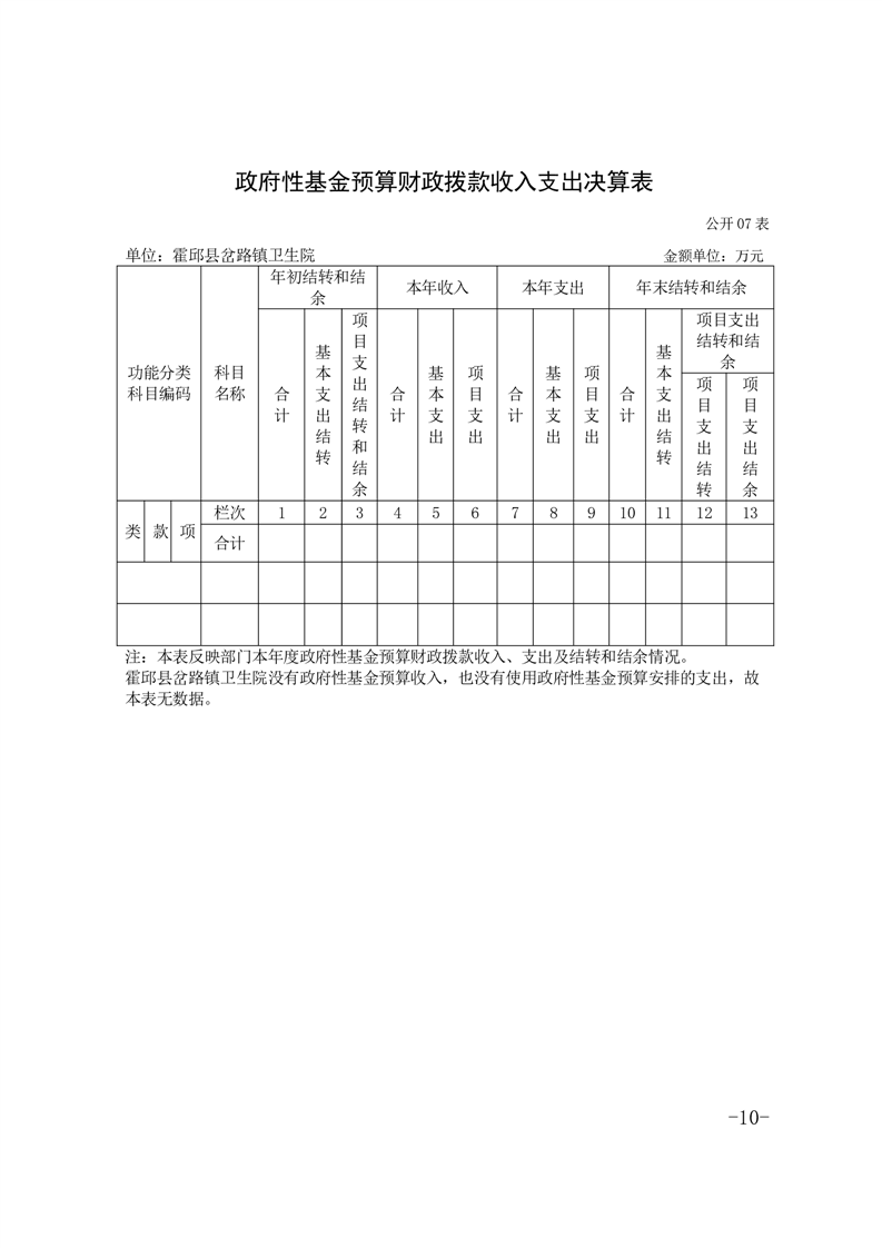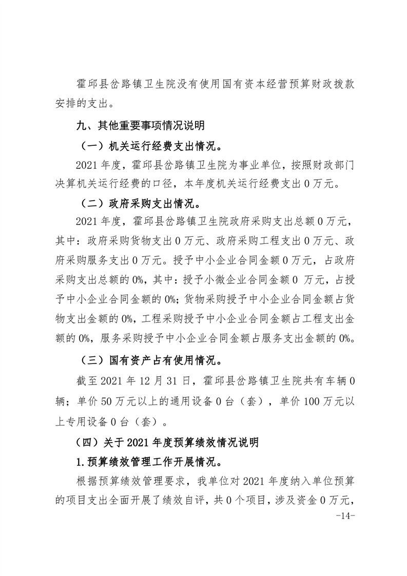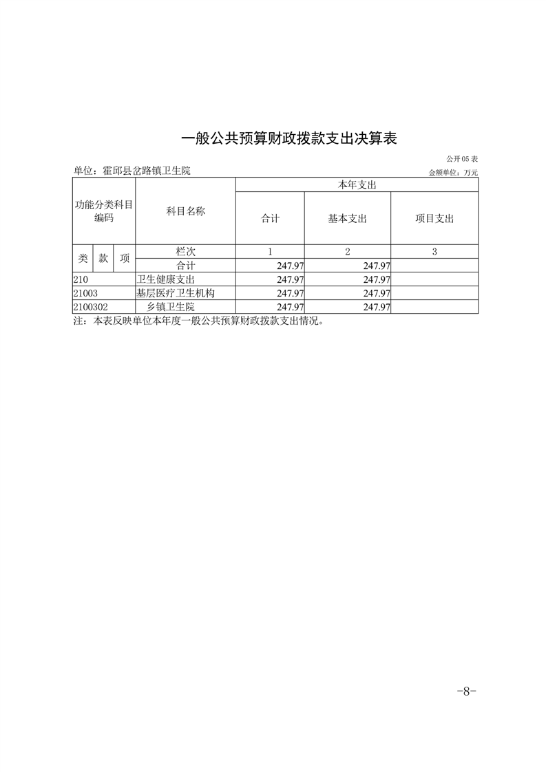 霍邱县岔路镇卫生院2021年度单位决算公开