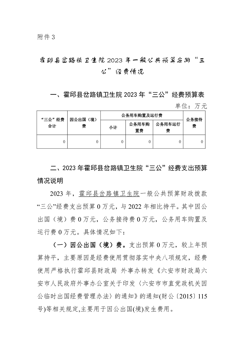 霍邱县岔路镇卫生院2023年单位一般公共预算安排“三公”经费情况公开