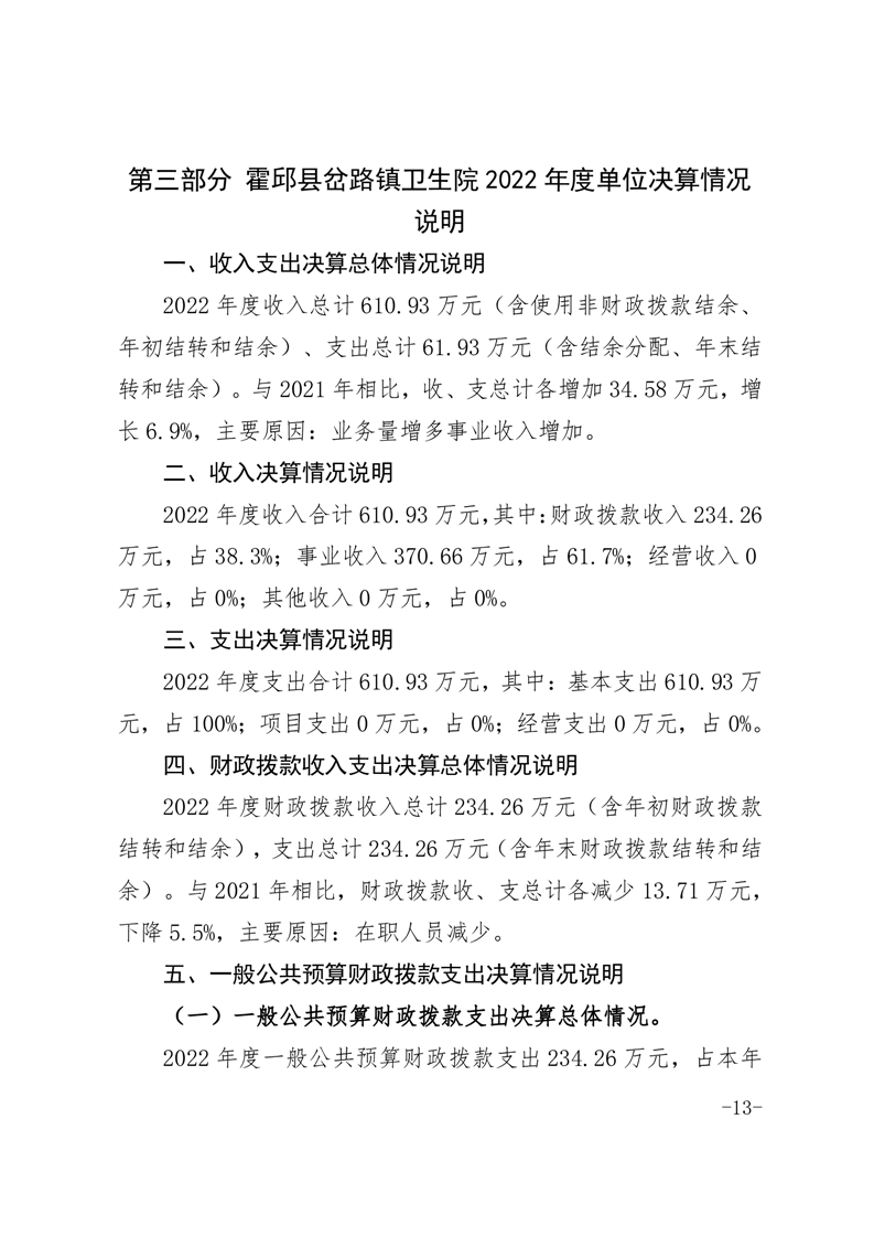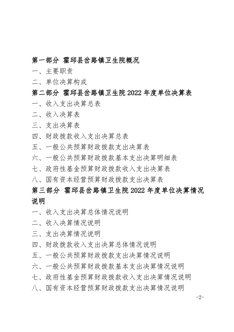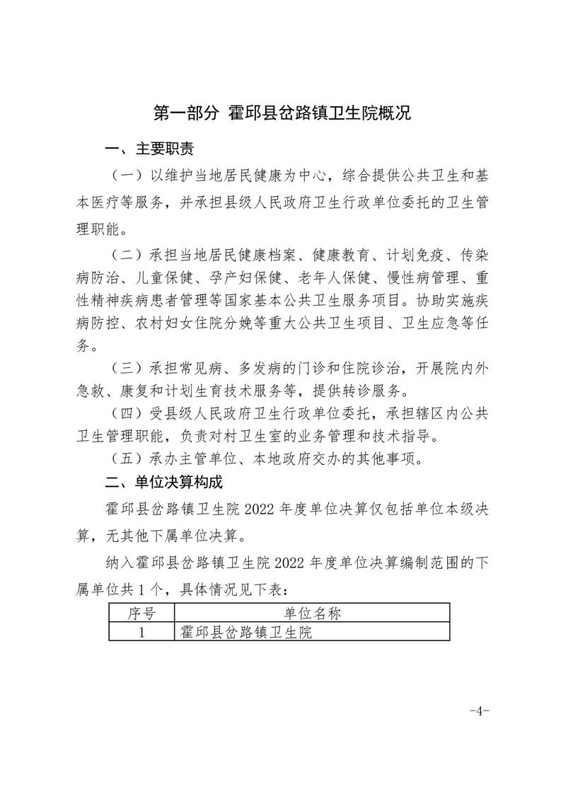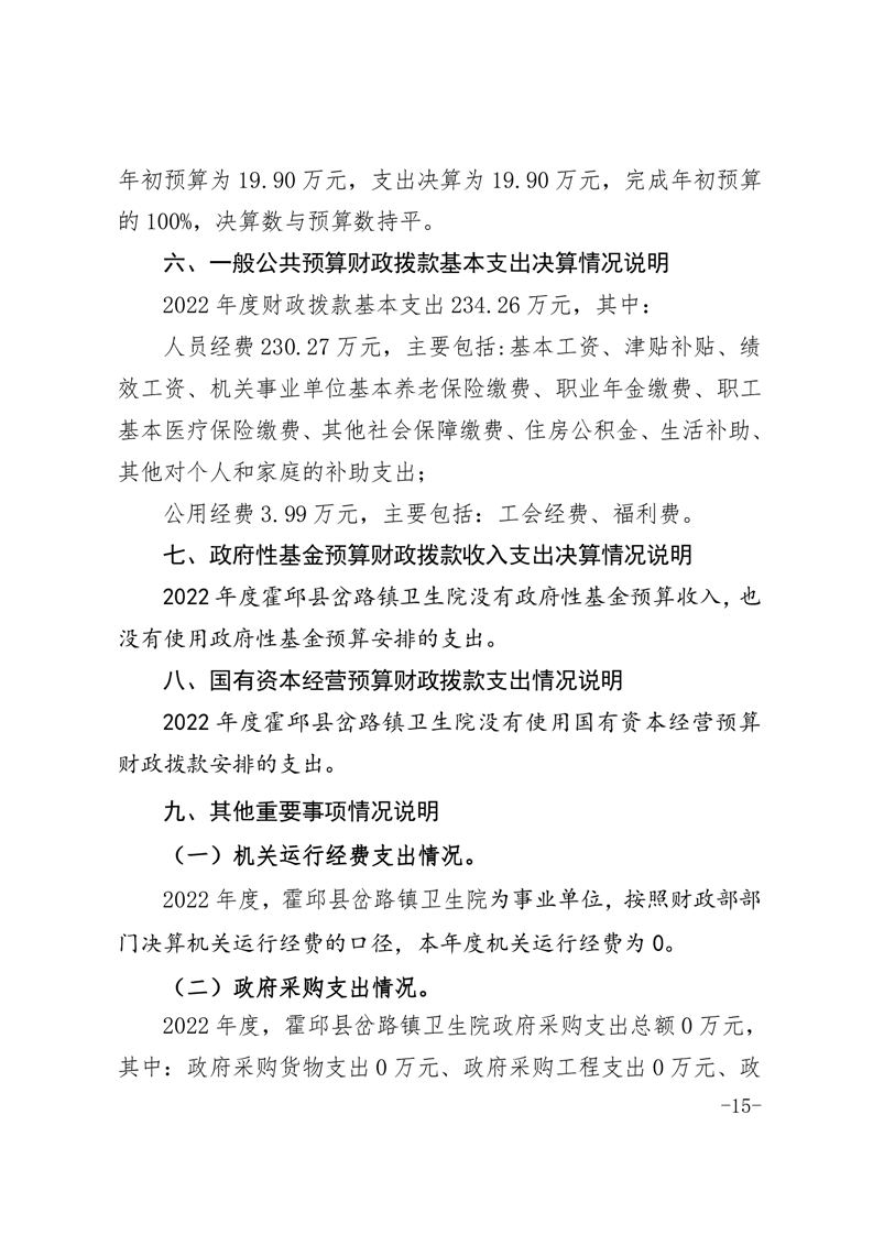 霍邱县岔路镇卫生院2022年度决算公开