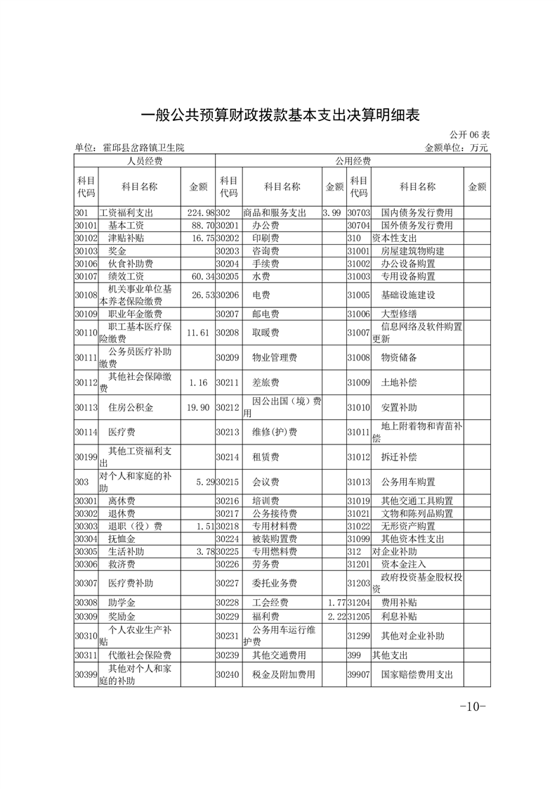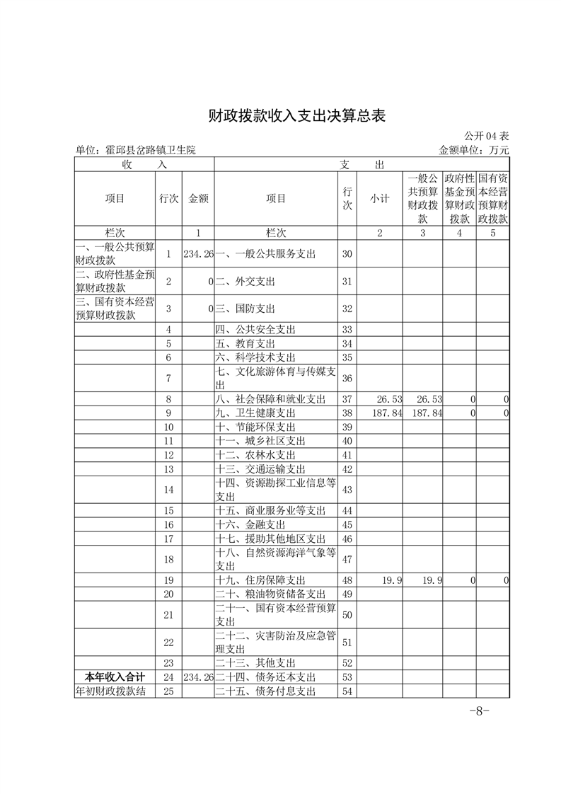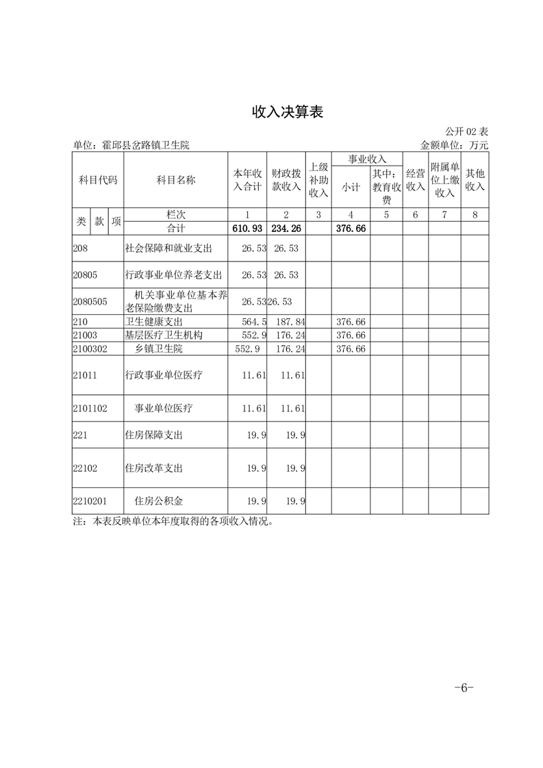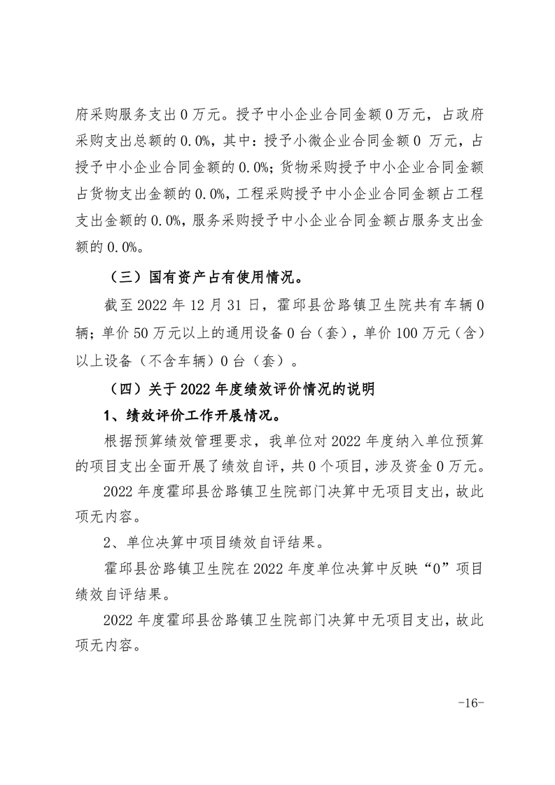 霍邱县岔路镇卫生院2022年度决算公开
