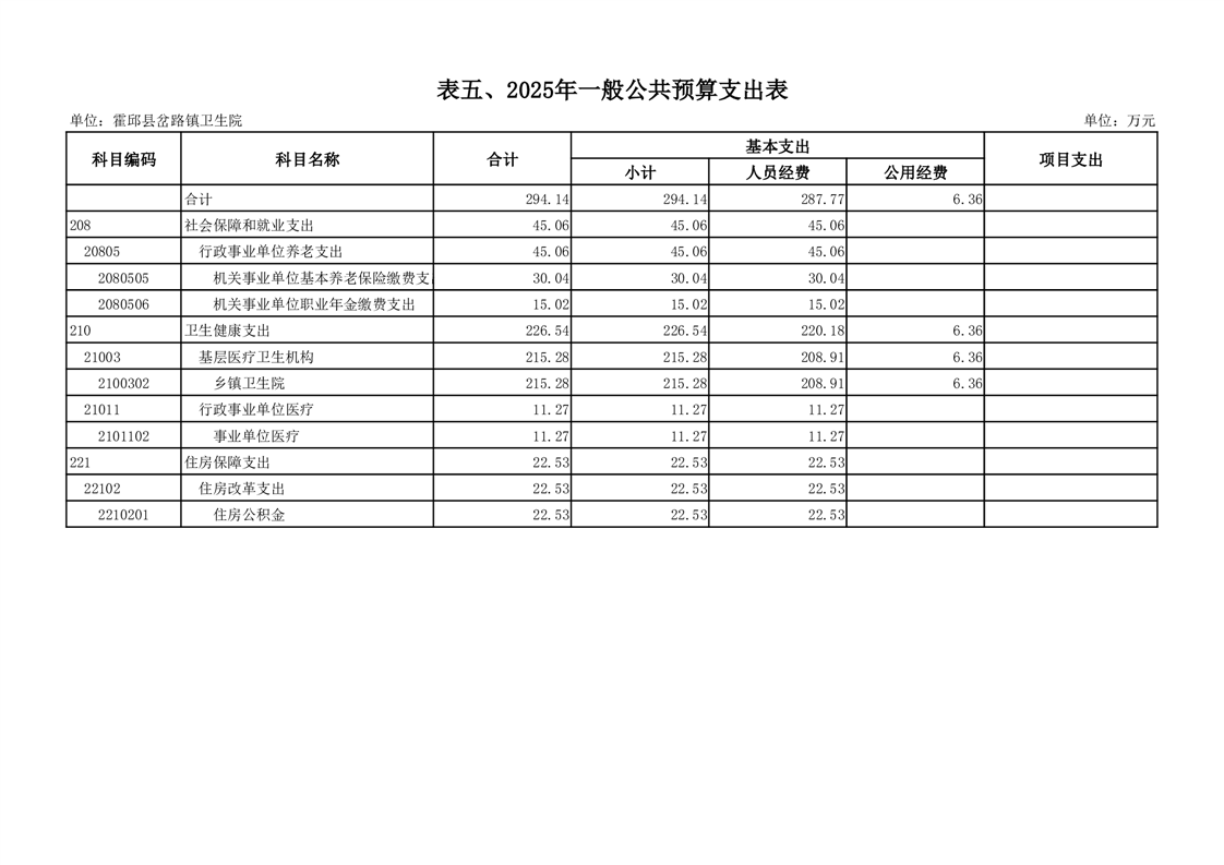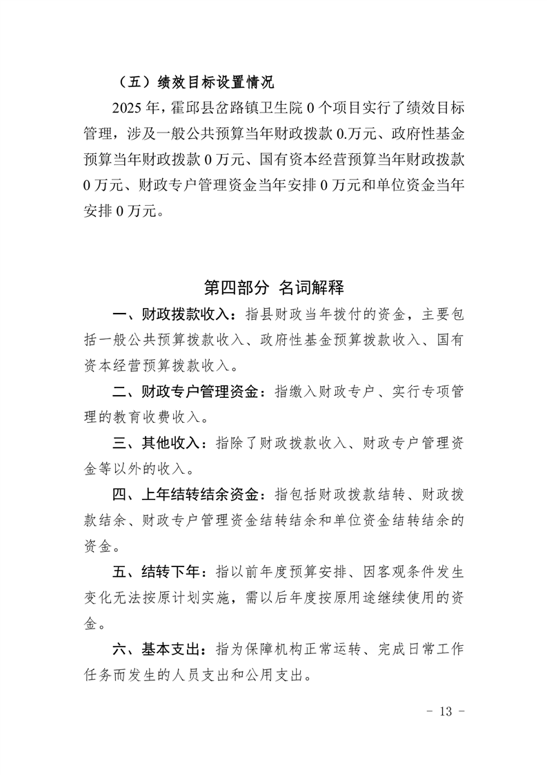 霍邱县岔路镇卫生院2025年部门单位预算公开