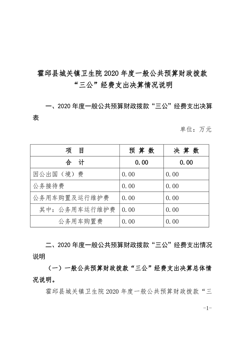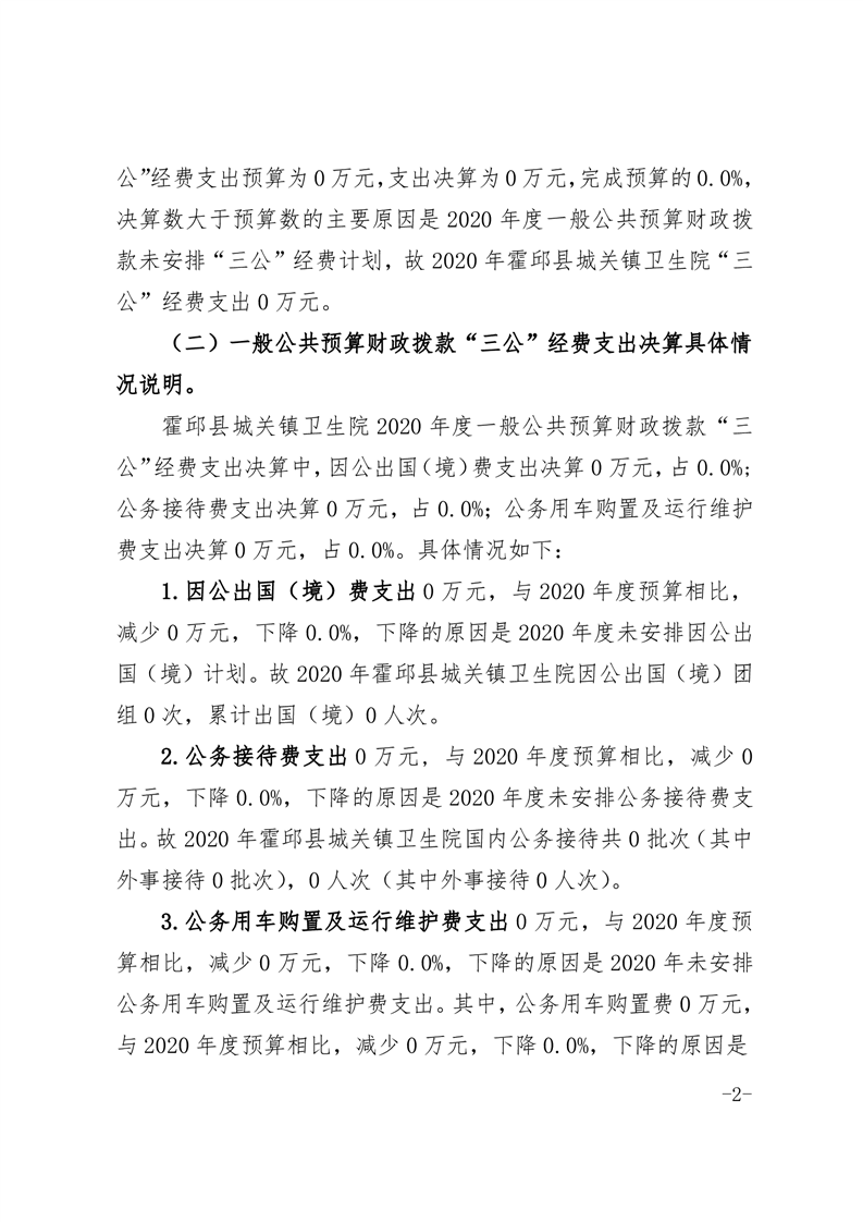 霍邱县城关镇卫生院2020年一般公共预算财政拨款“三公”经费支出决算情况