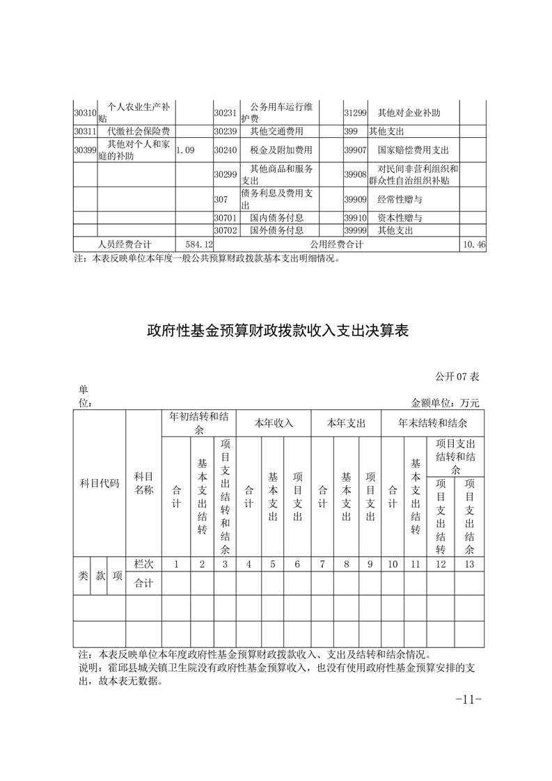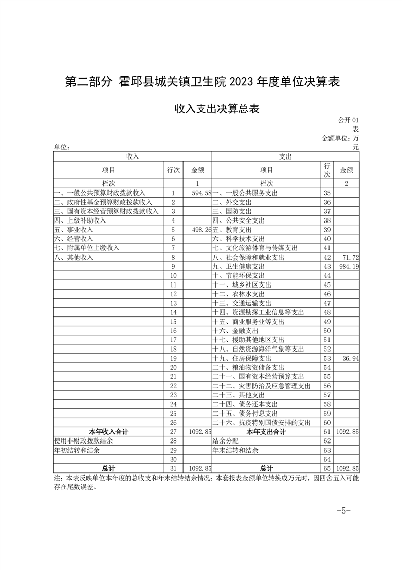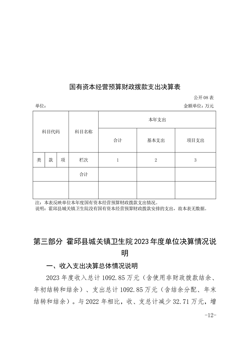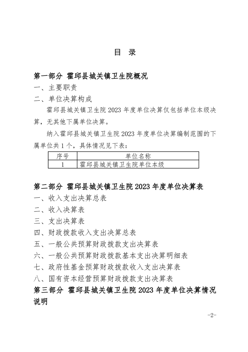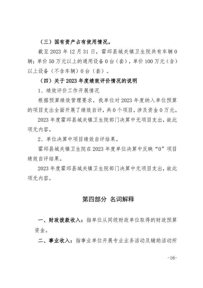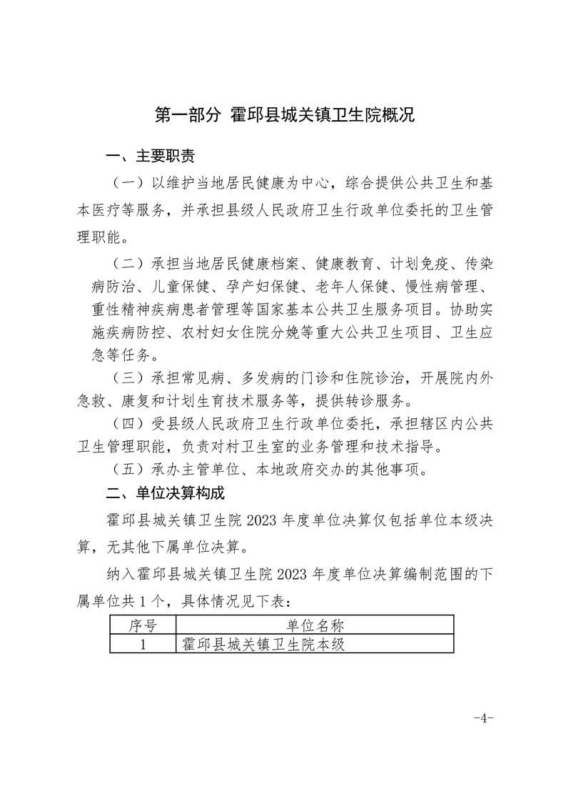 霍邱县城关镇卫生院2023年度决算公开
