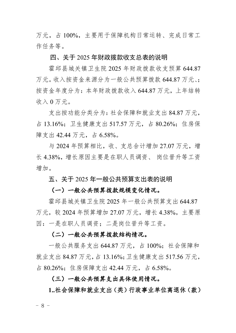 霍邱县城关镇卫生院2025年部门单位预算公开