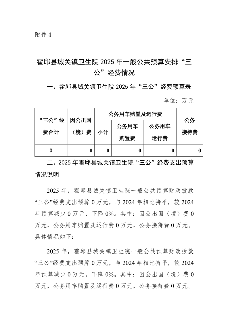 霍邱县城关镇卫生院2025年部门单位一般公共预算安排“三公”经费情况公开