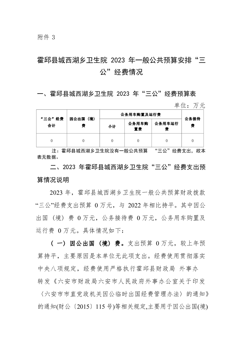 霍邱县城西湖乡卫生院2023年单位一般公共预算安排“三公”经费情况公开