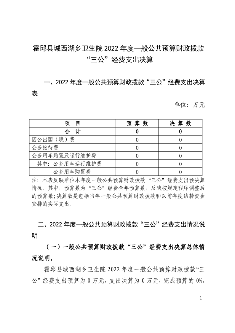 霍邱县城西湖乡卫生院2022年度一般公共预算财政拨款“三公经费”支出决算