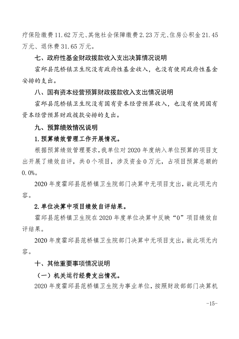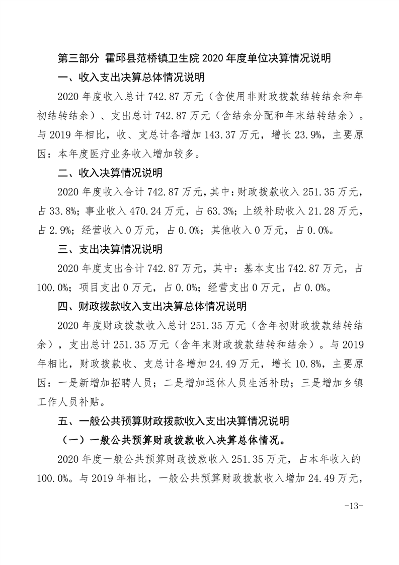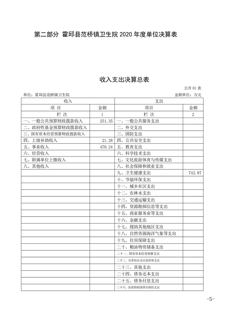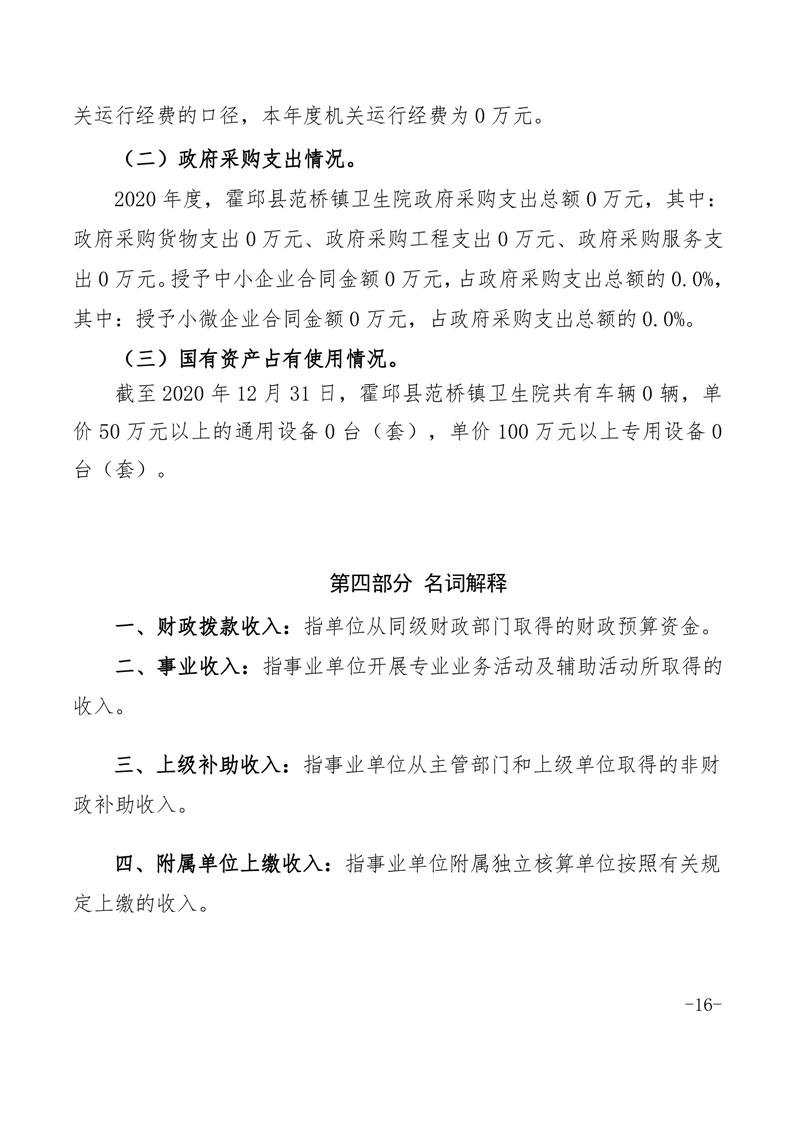 霍邱县范桥镇卫生院2020年度单位决算公开