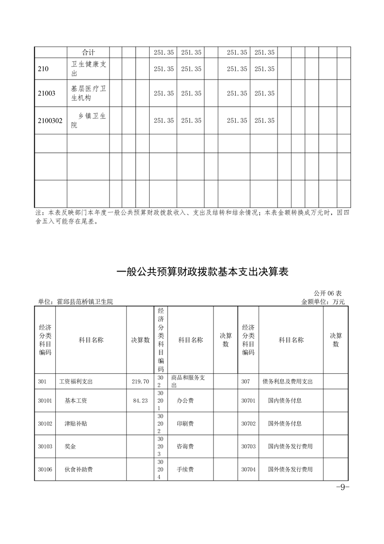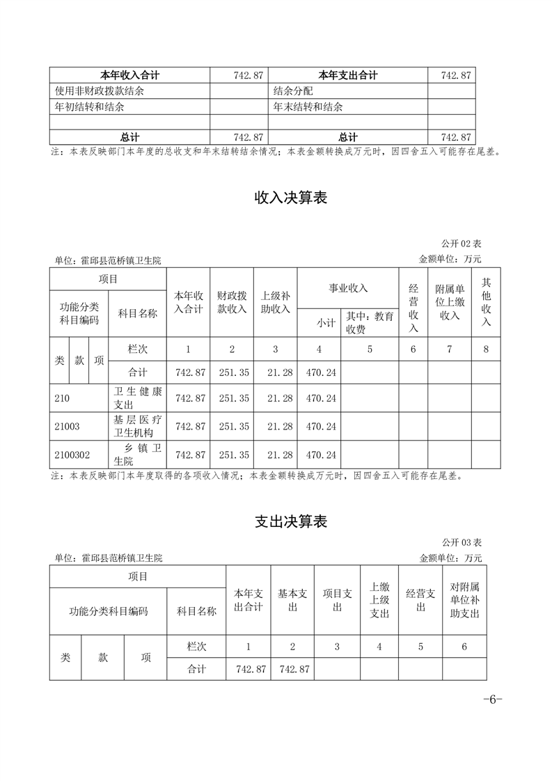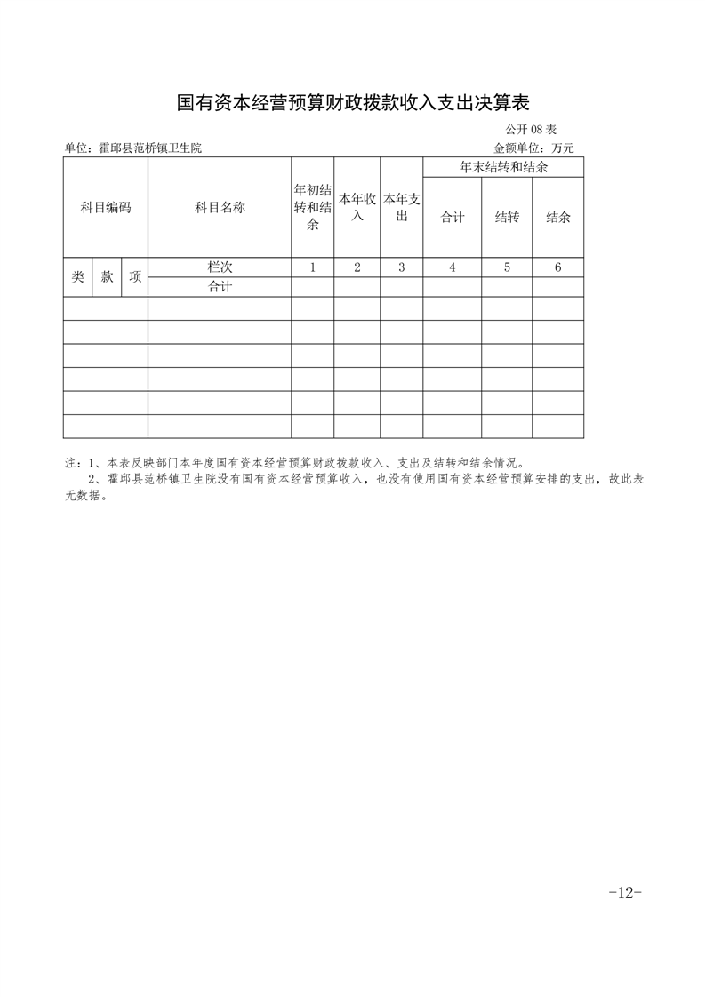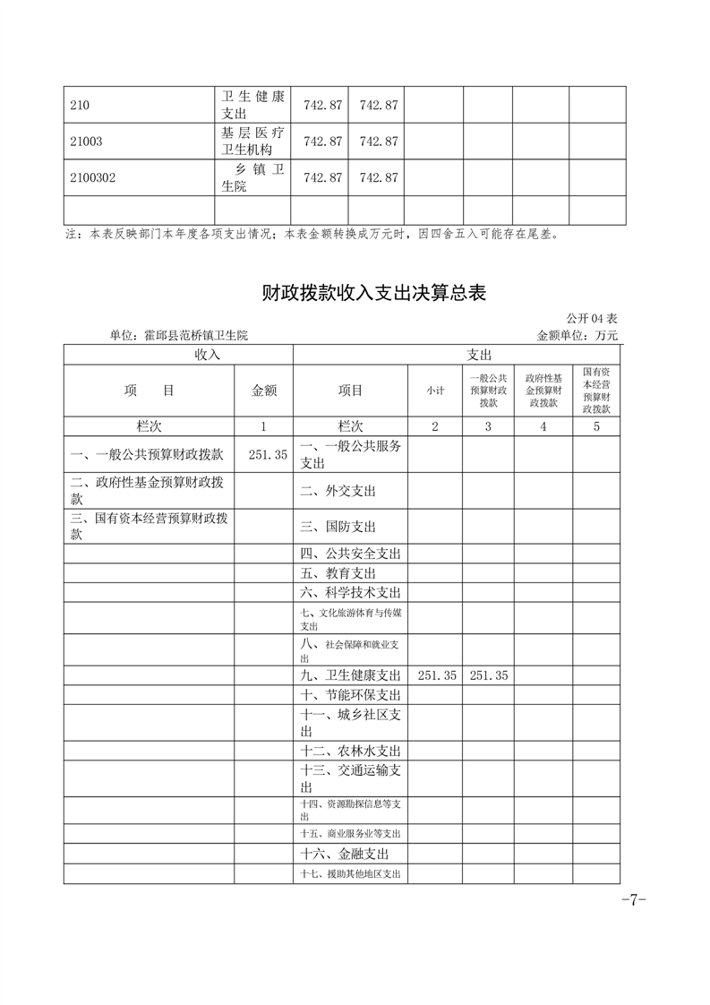 霍邱县范桥镇卫生院2020年度单位决算公开