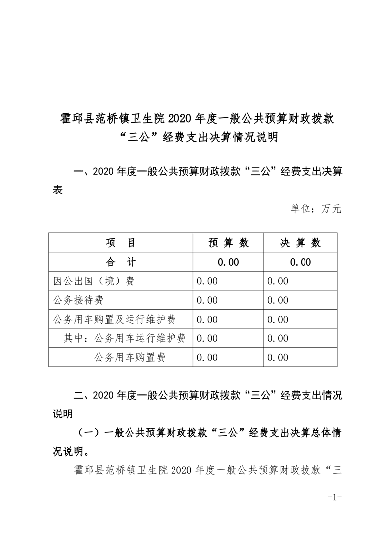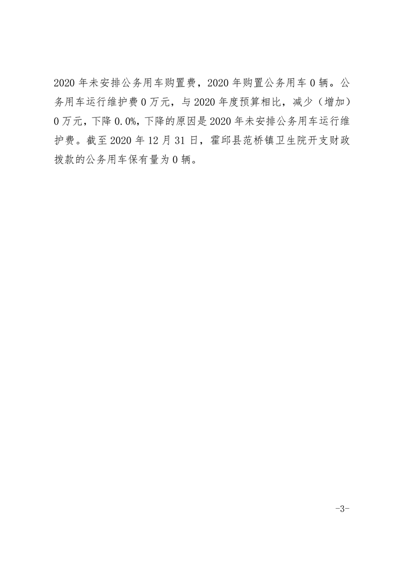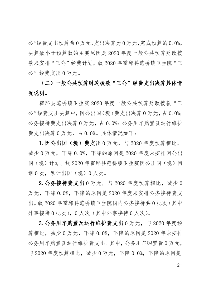 霍邱县范桥镇卫生院2020年度一般公共预算财政拨款“三公”经费支出决算情况公开