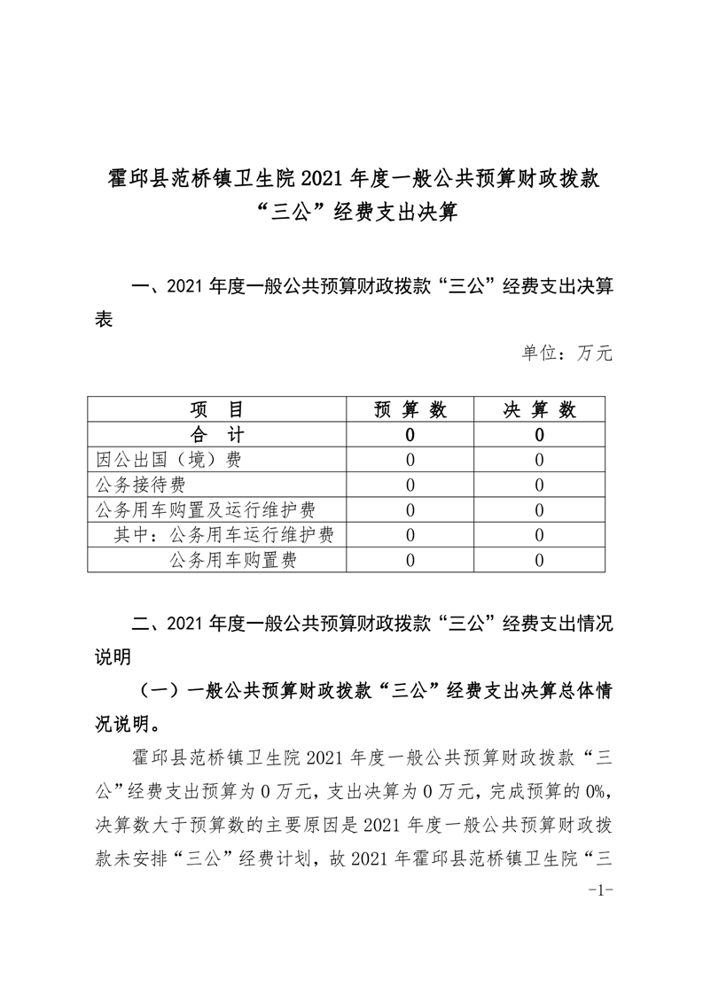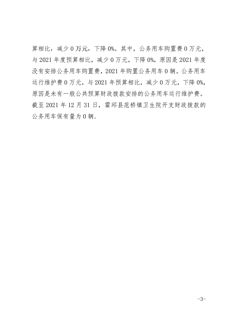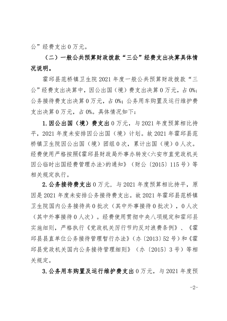 霍邱县范桥镇卫生院2021年度一般公共预算财政拨款“三公”经费支出决算