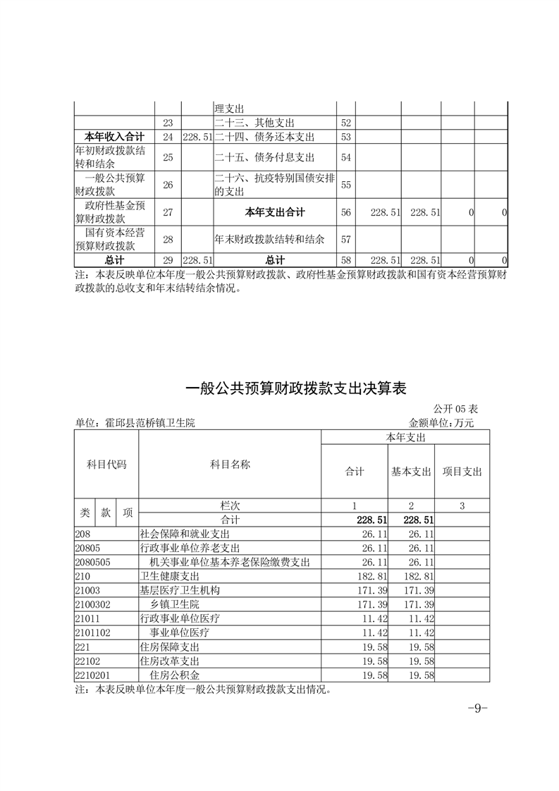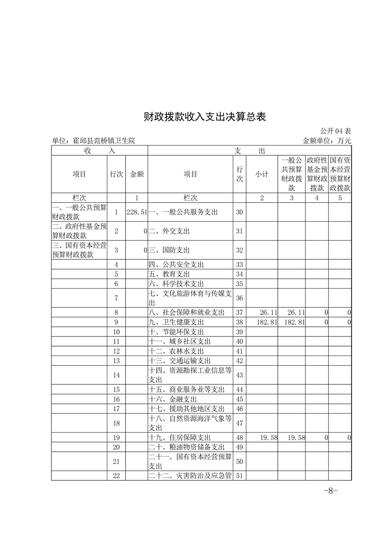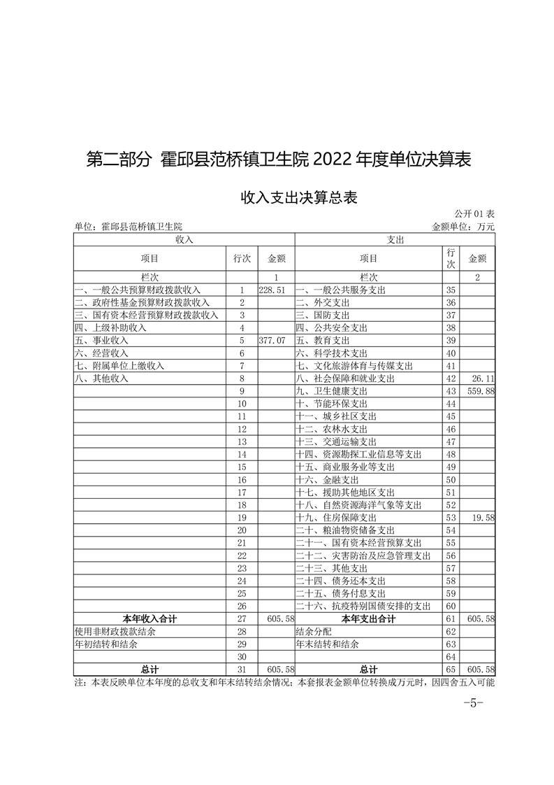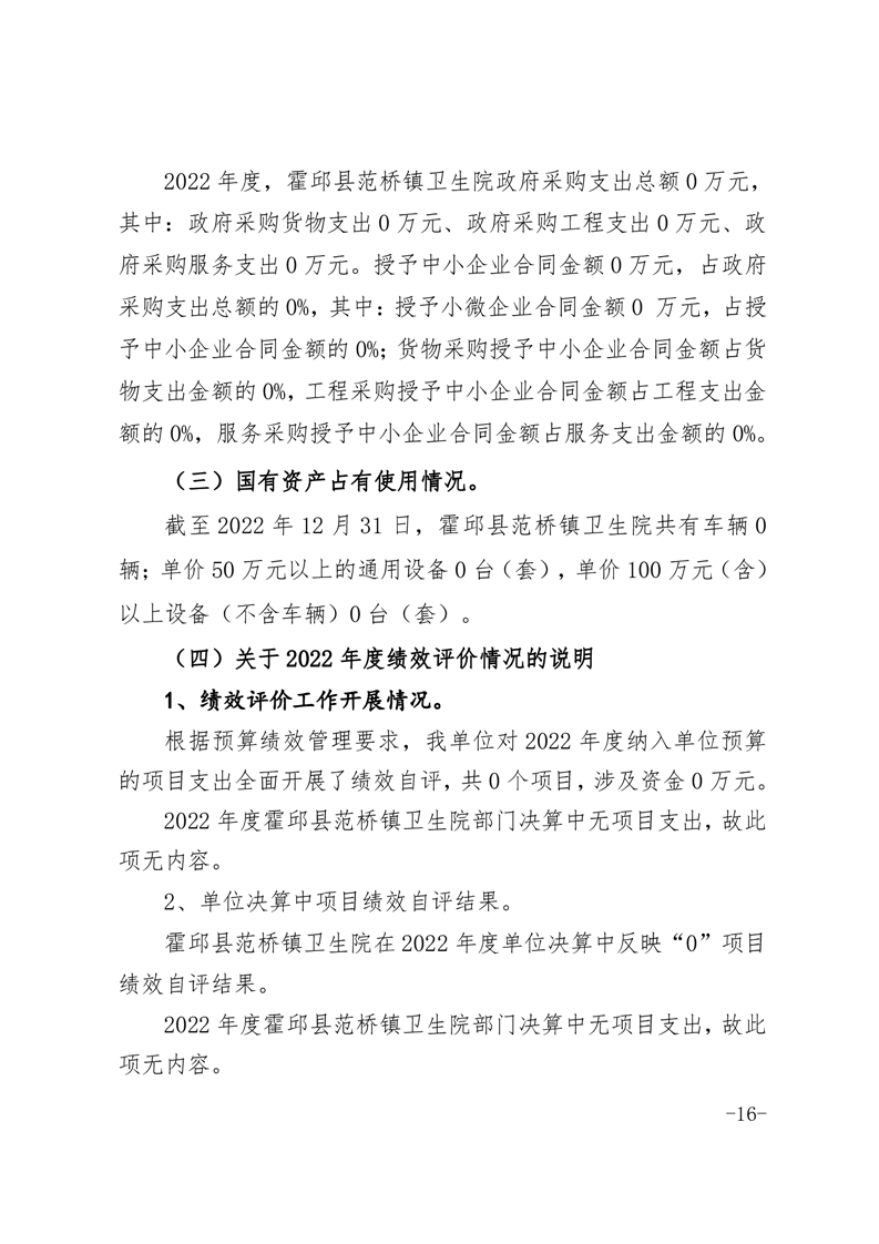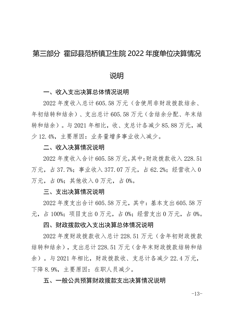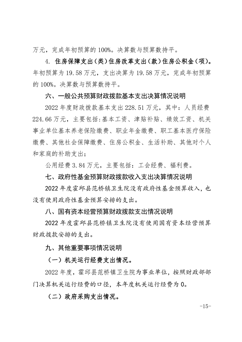 霍邱县范桥镇卫生院2022年度决算公开