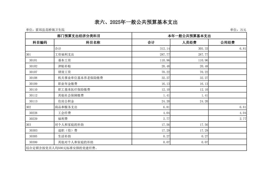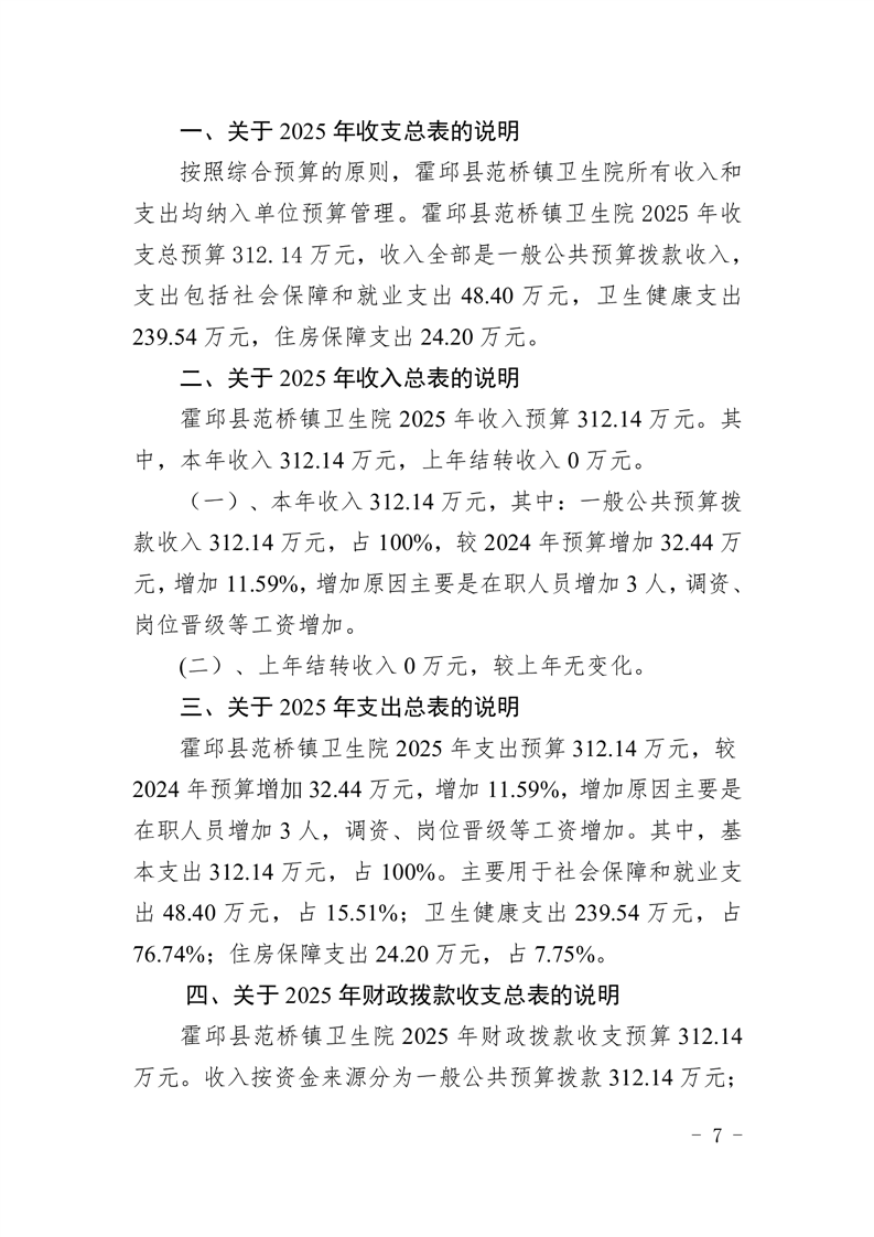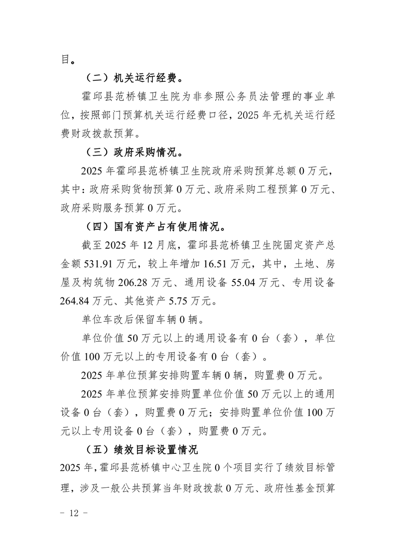霍邱县范桥镇卫生院2025年部门单位预算公开