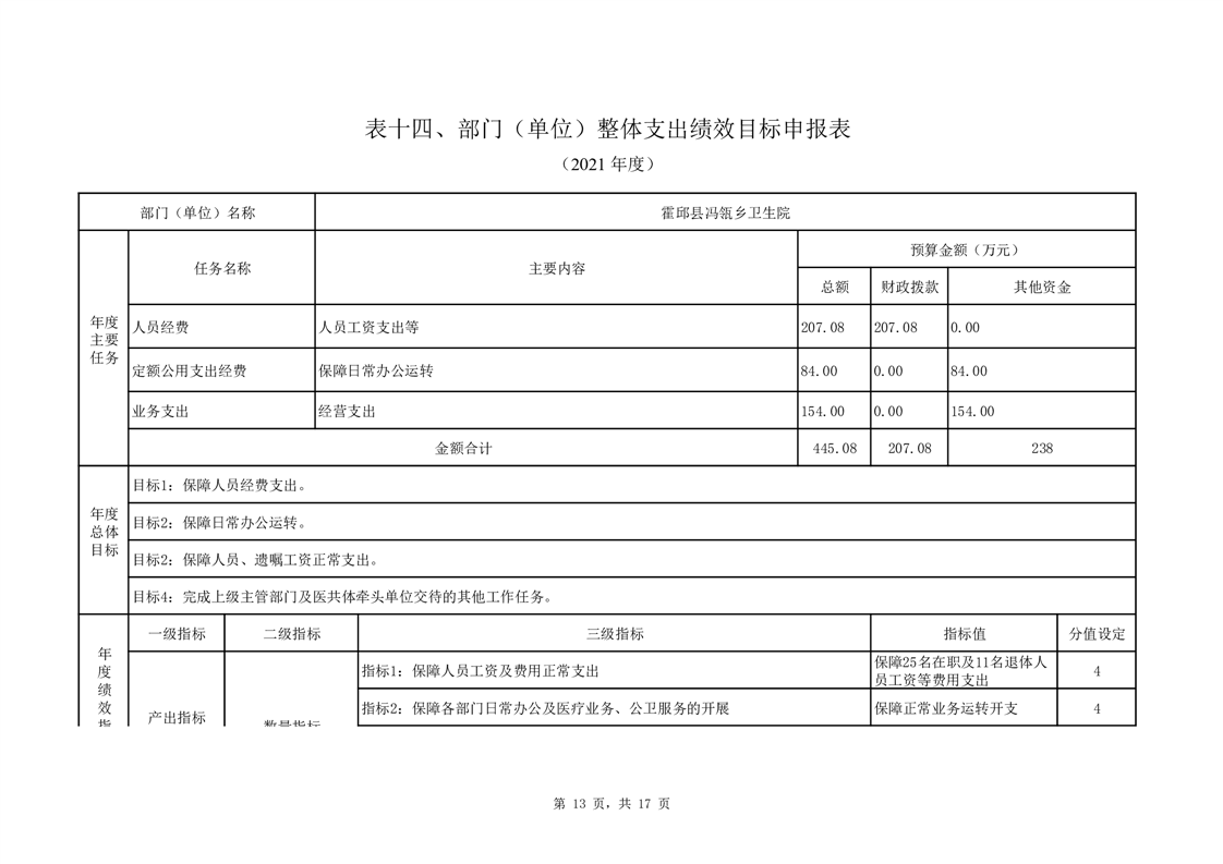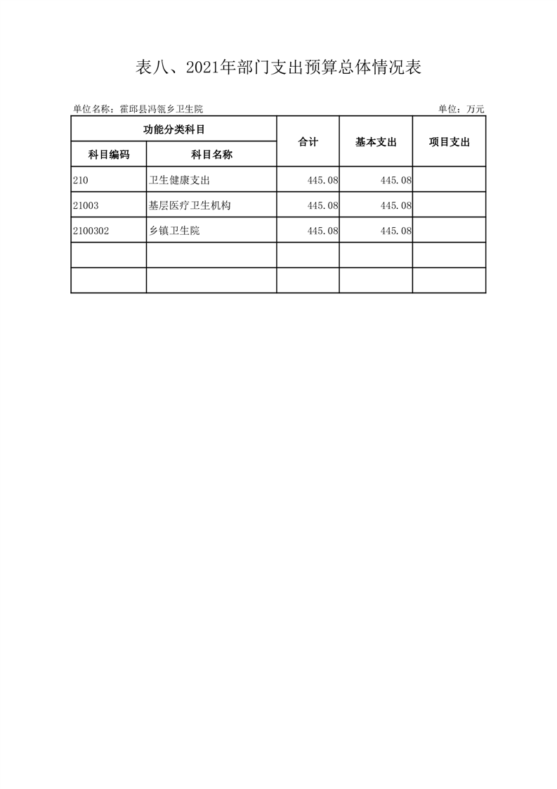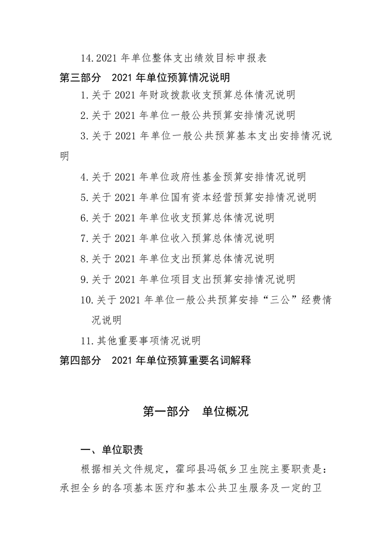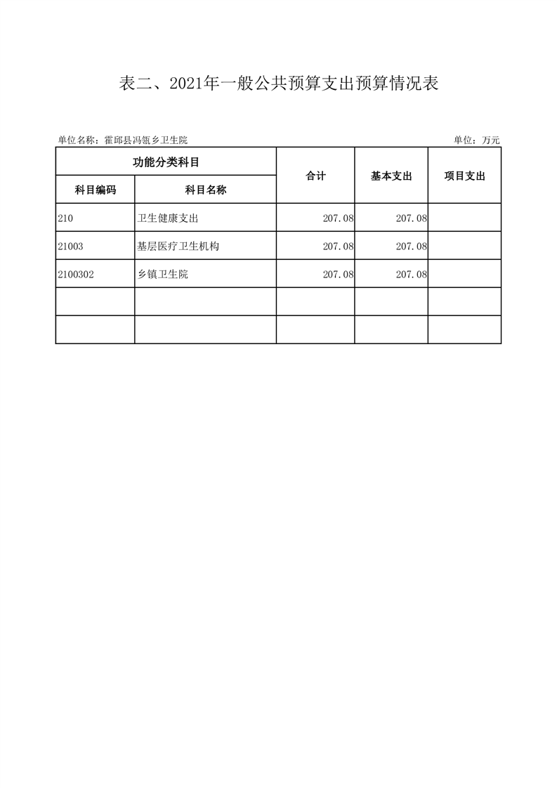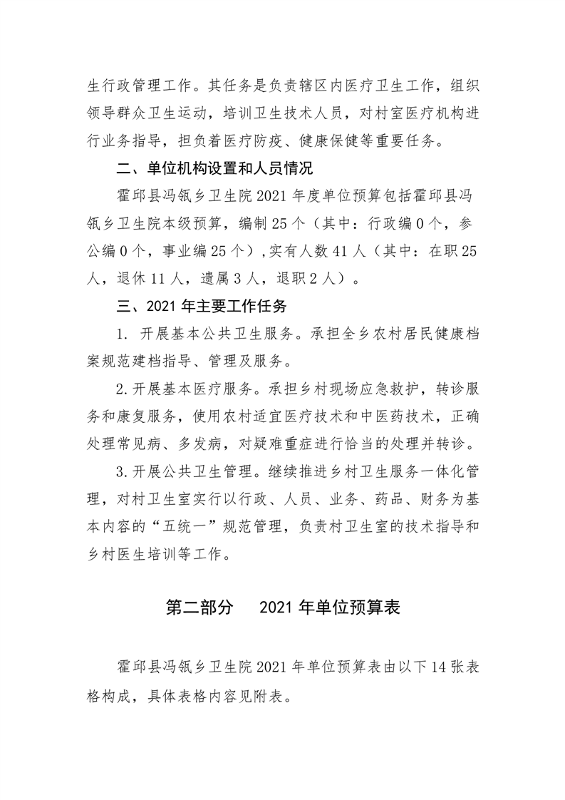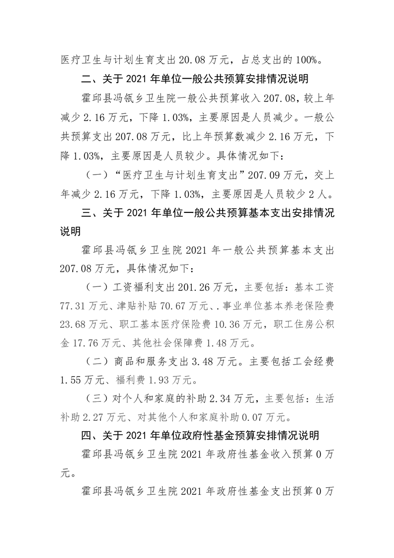 霍邱县冯瓴乡卫生院2021年单位预算公开
