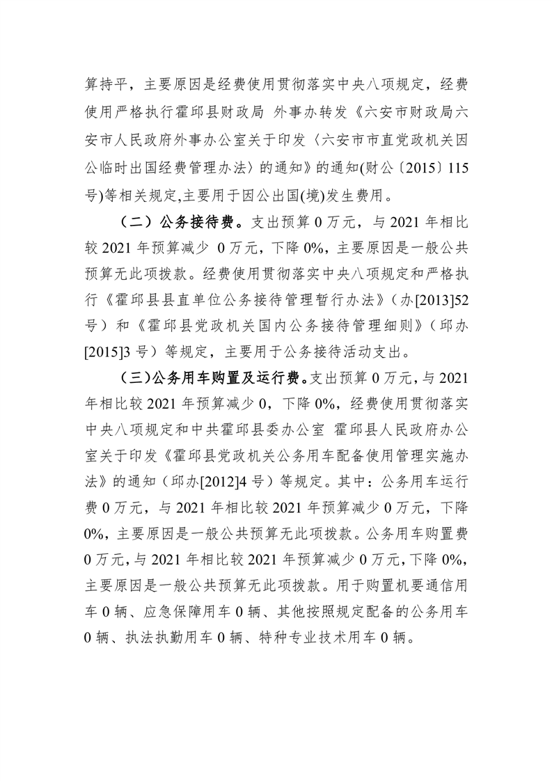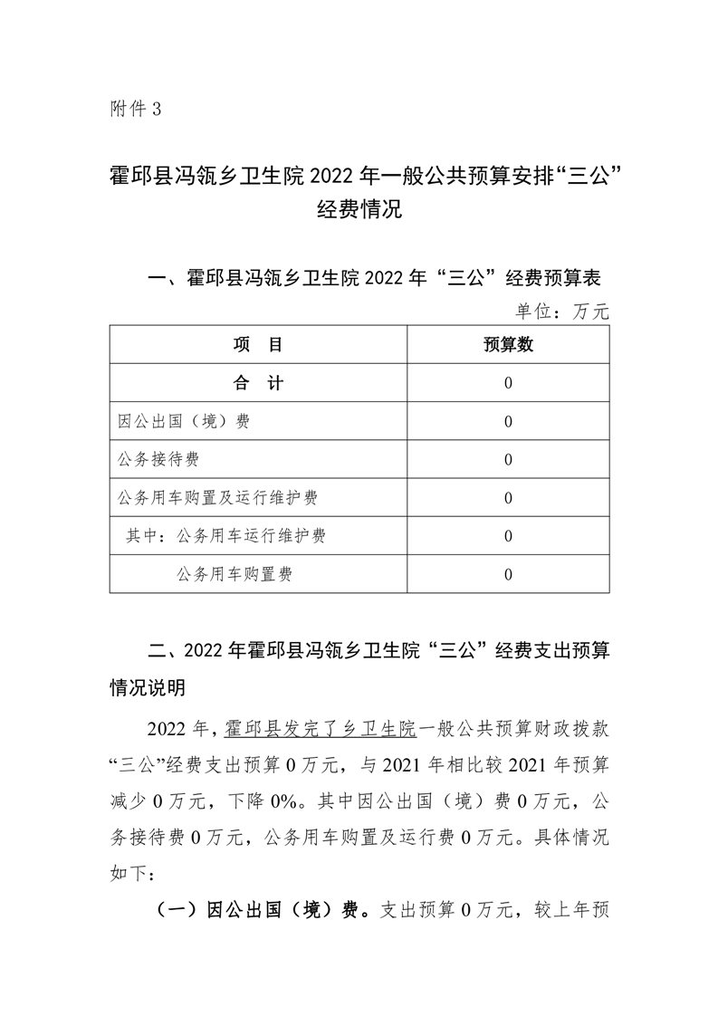 霍邱县冯瓴镇卫生院2022年一般公共预算安排“三公”经费情况公开