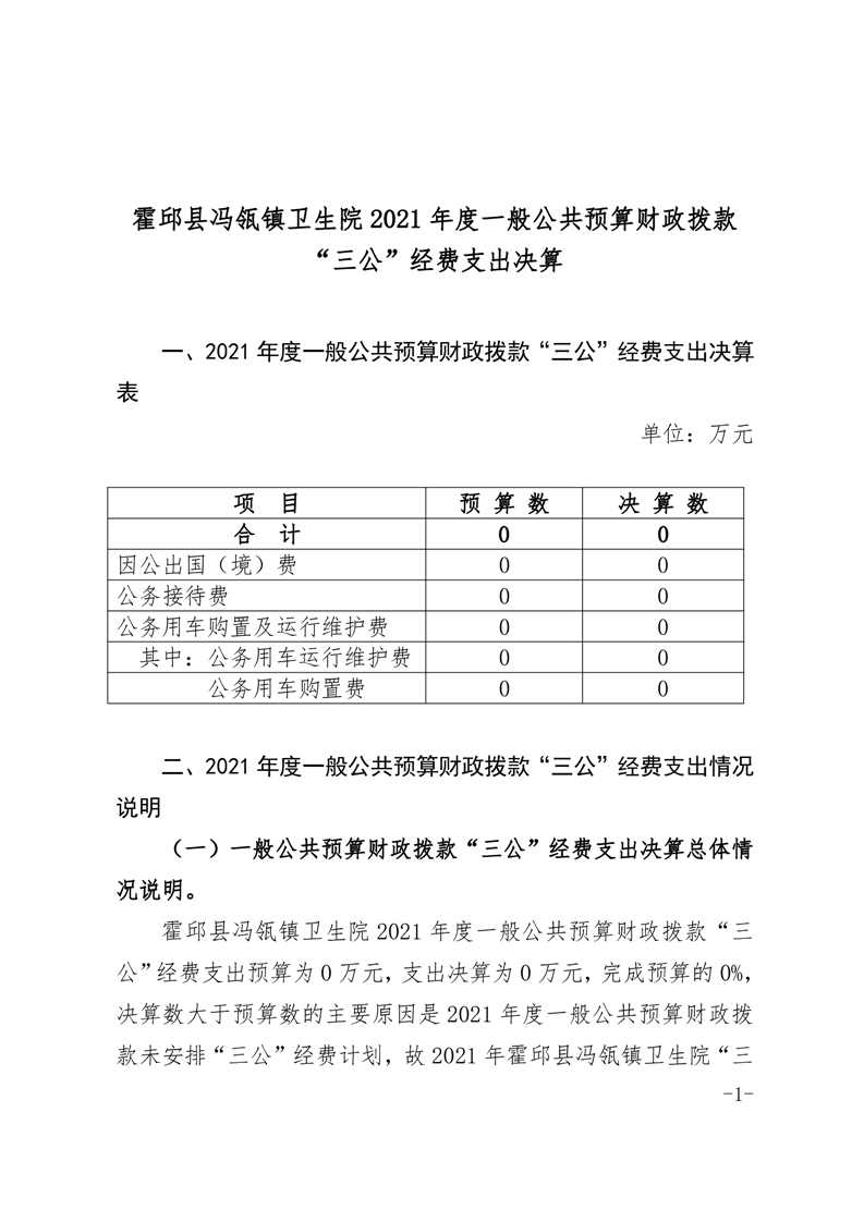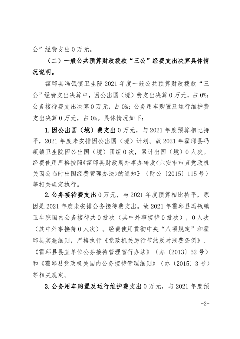 霍邱县冯瓴镇卫生院2021年度“三公经费”决算公开