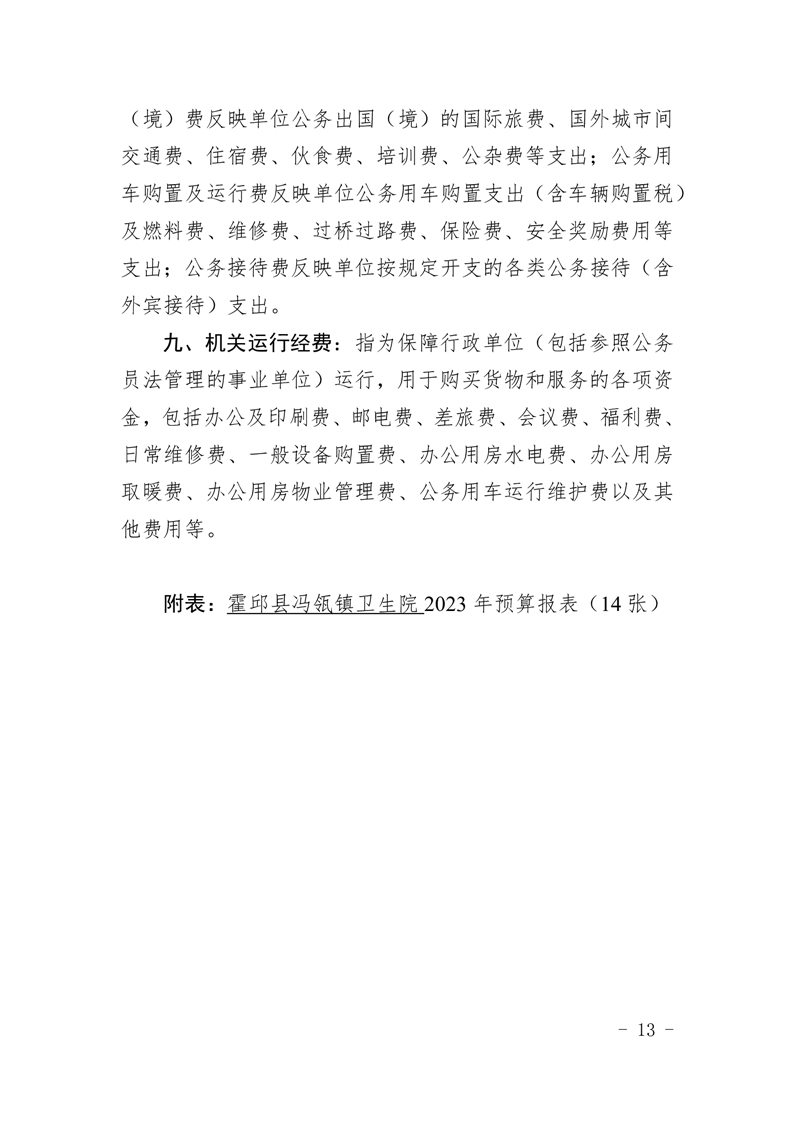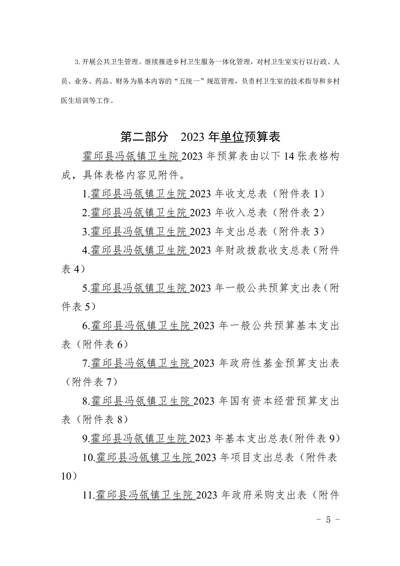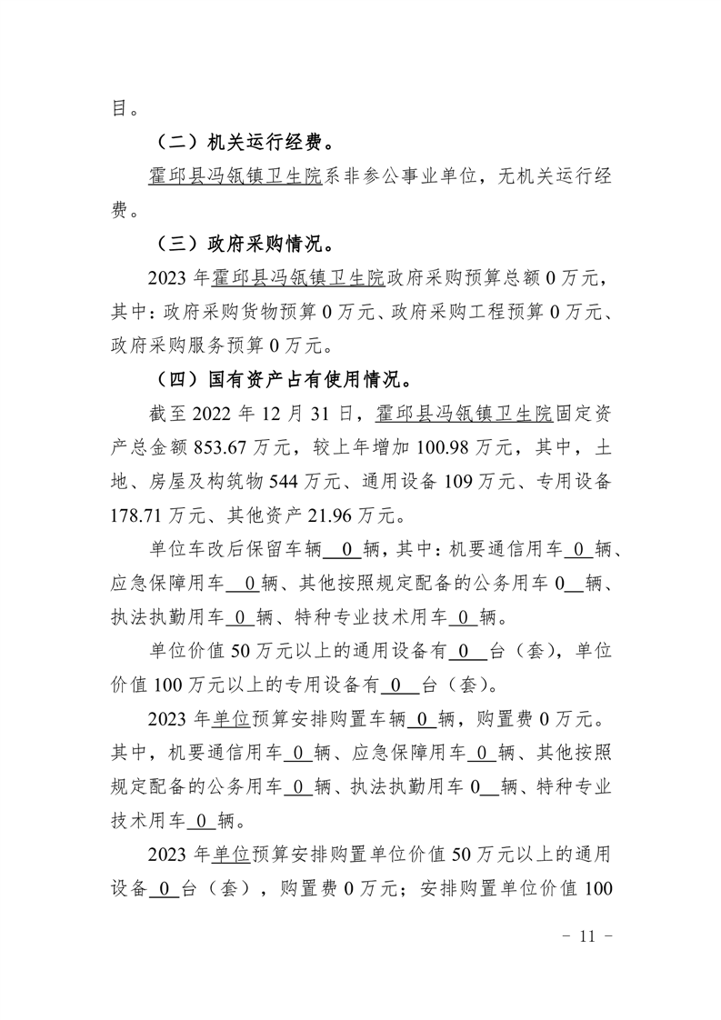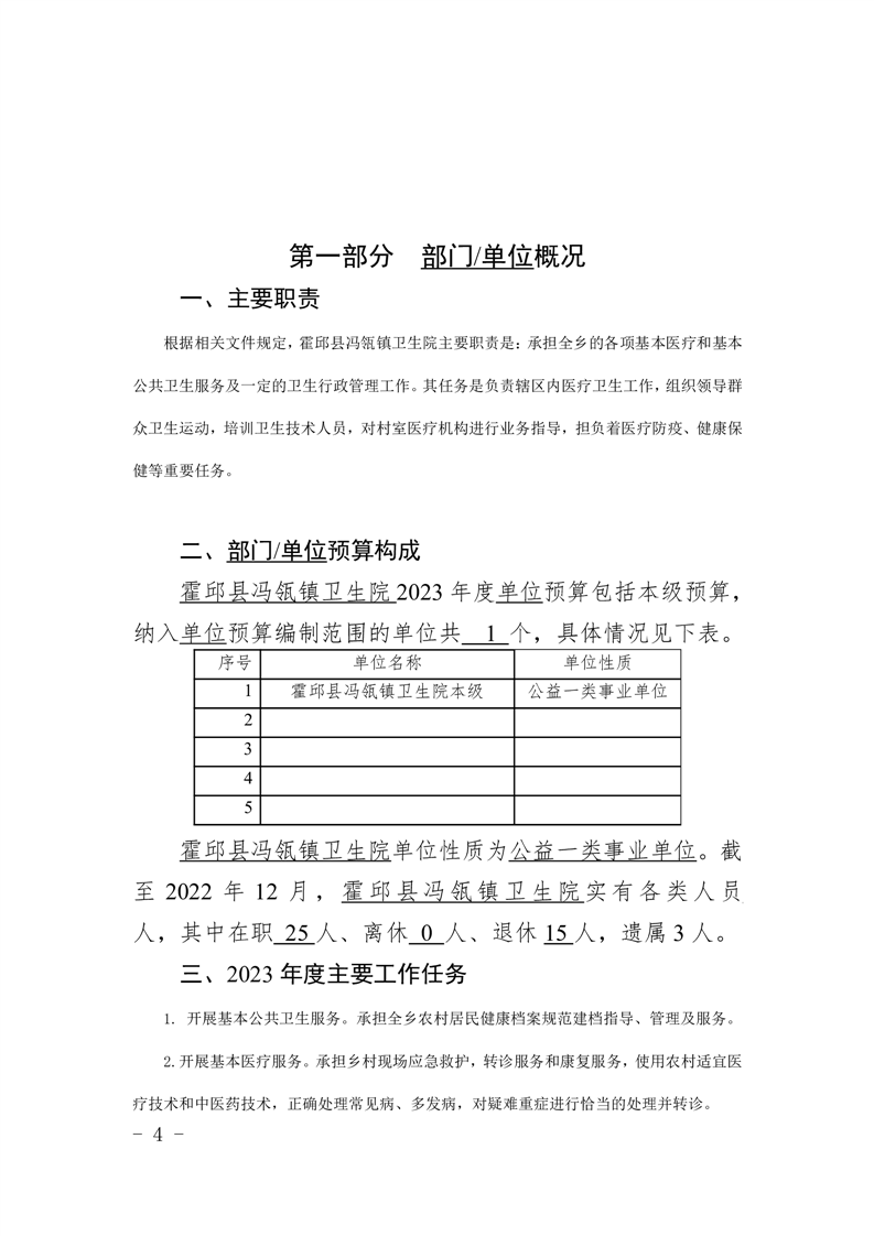 霍邱县冯瓴镇卫生院2023年部门单位预算公开