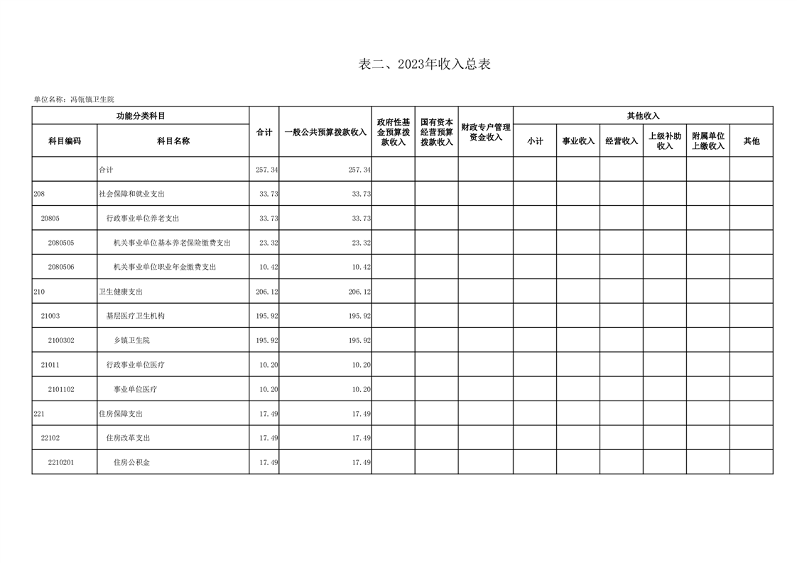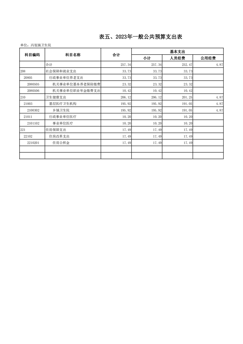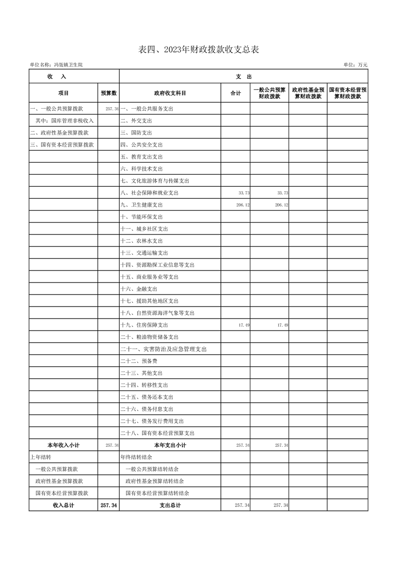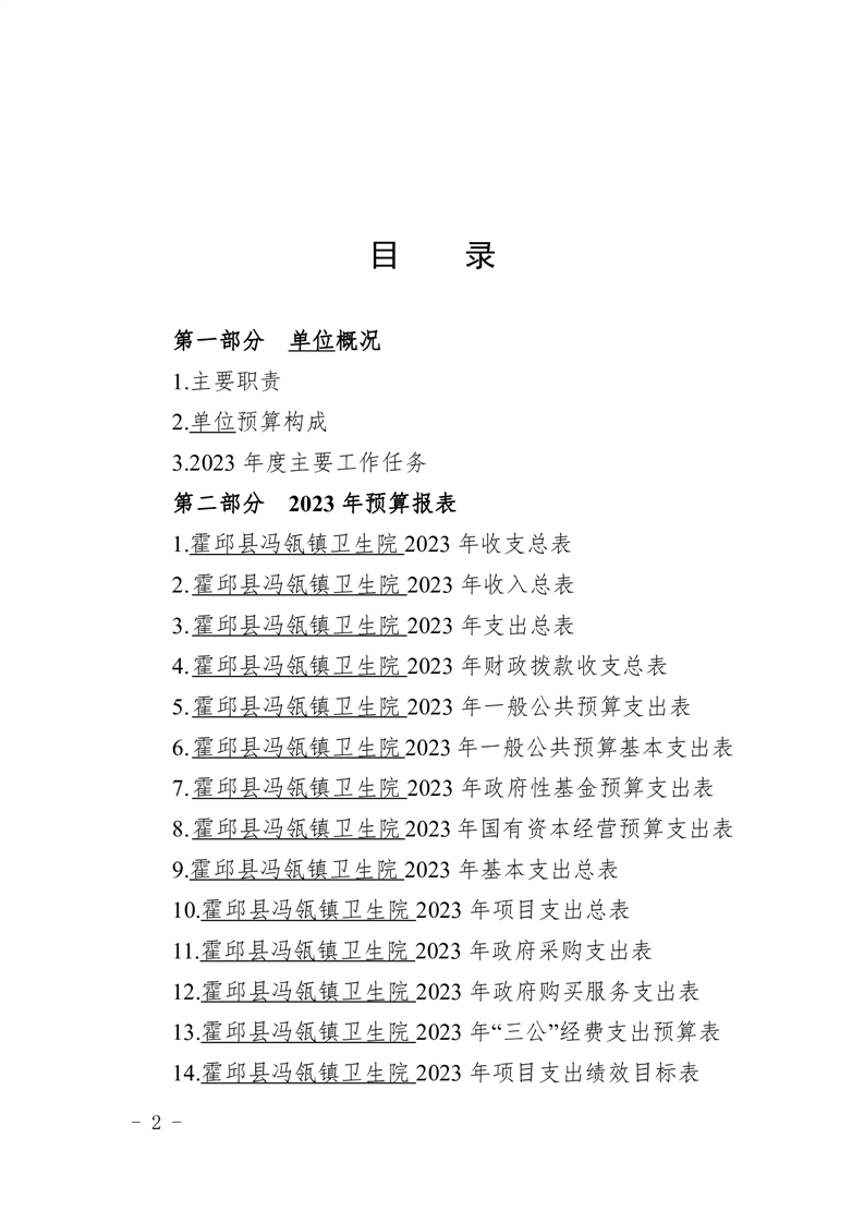 霍邱县冯瓴镇卫生院2023年部门单位预算公开