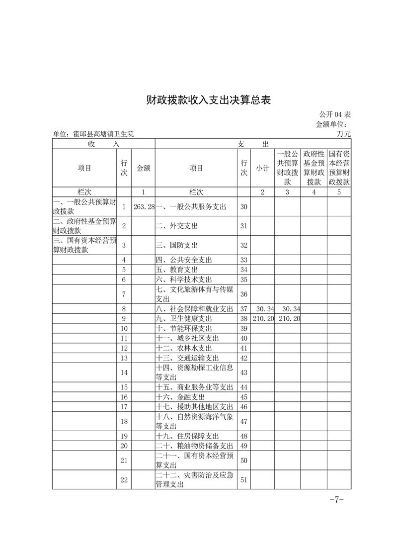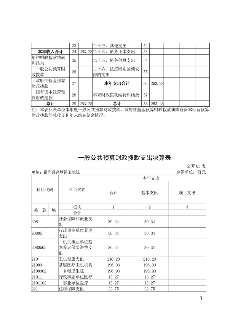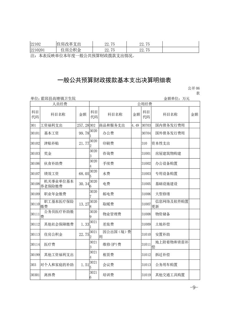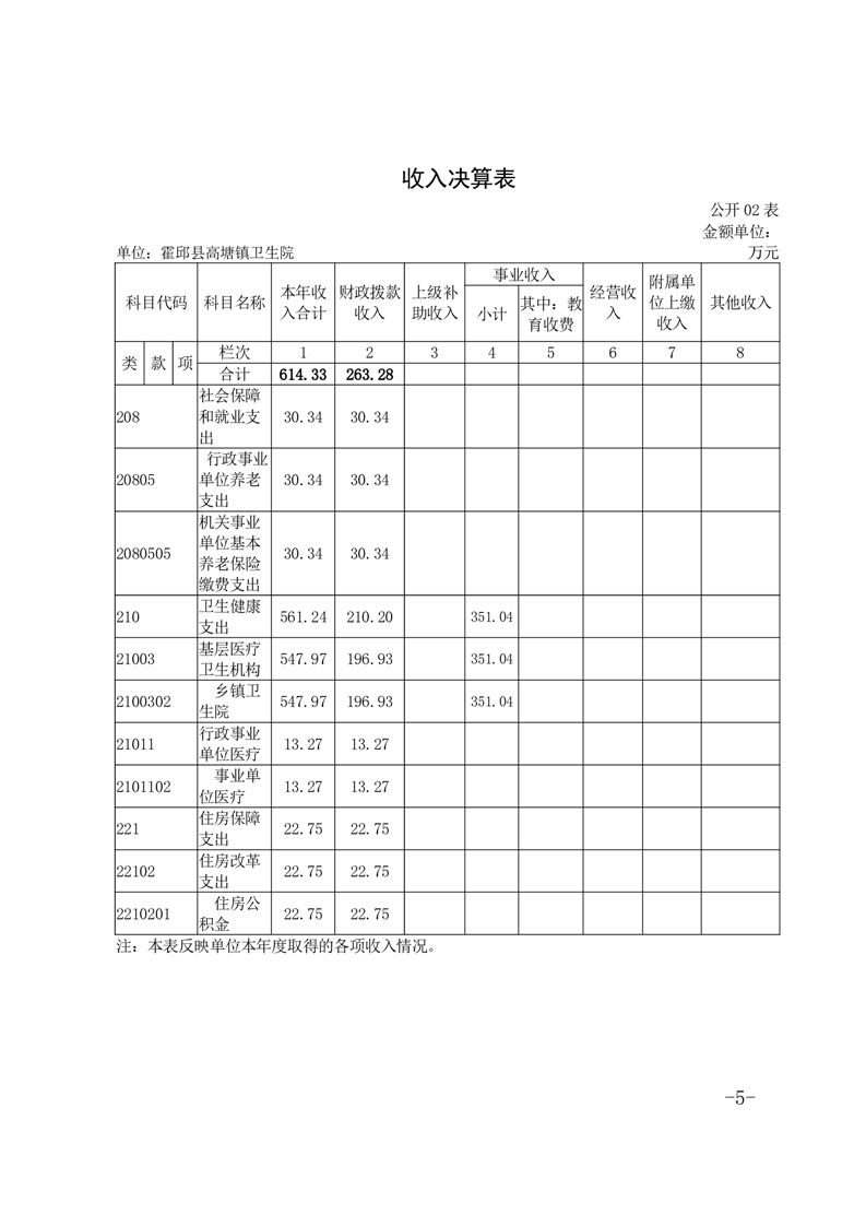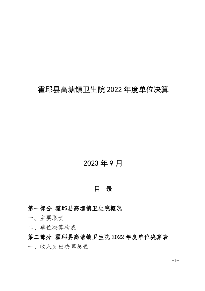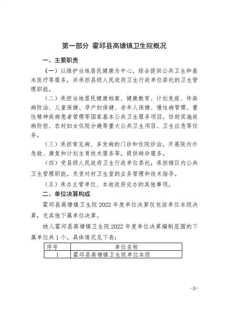霍邱县高塘镇卫生院2022年度单位决算公开