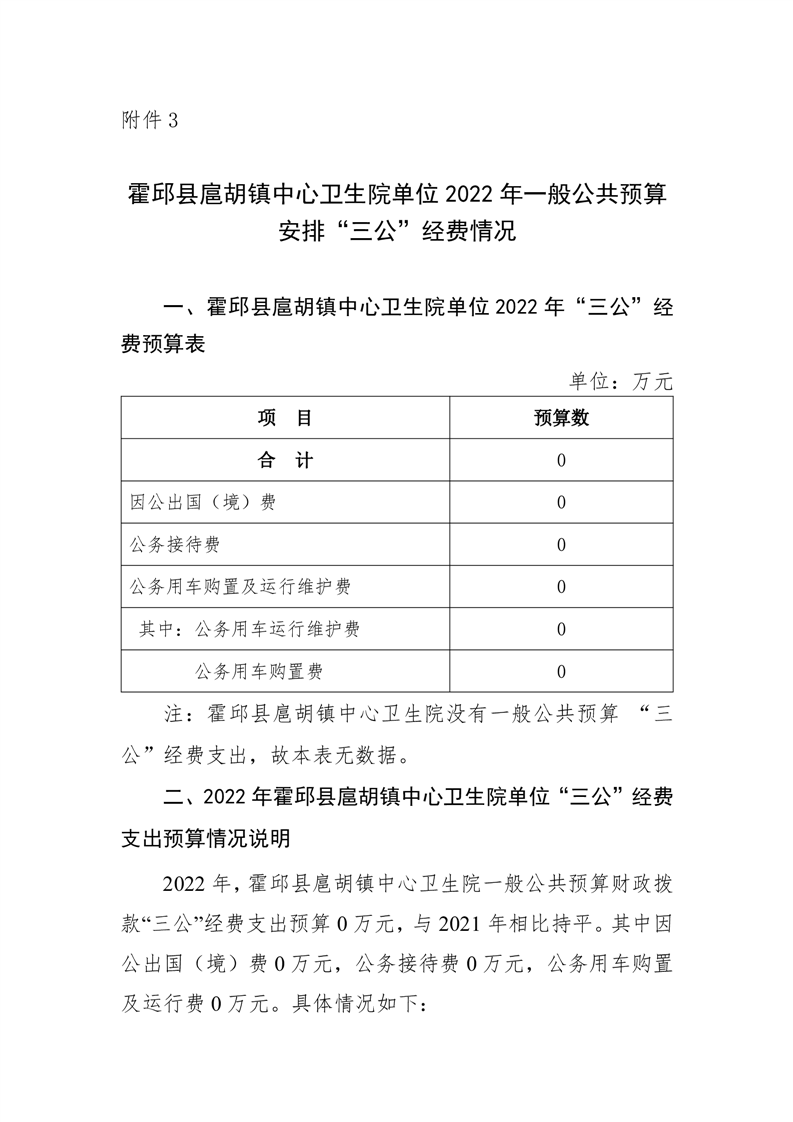 霍邱县扈胡镇中心卫生院2022年三公经费公开