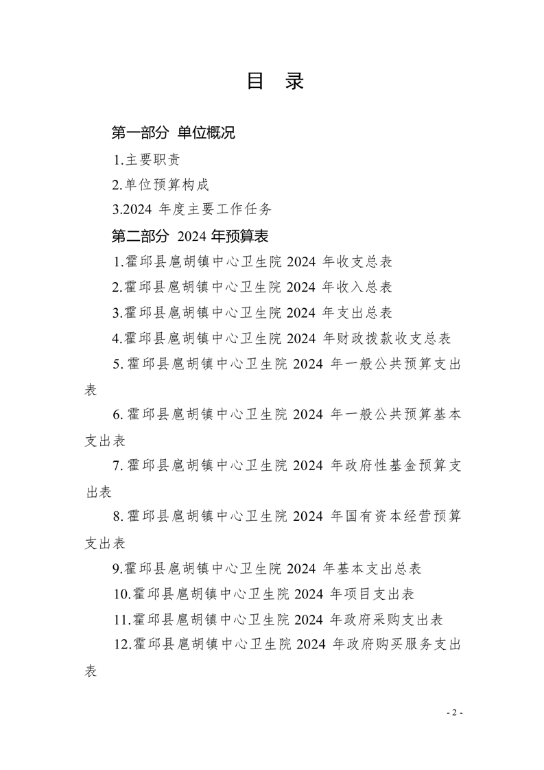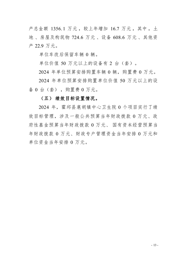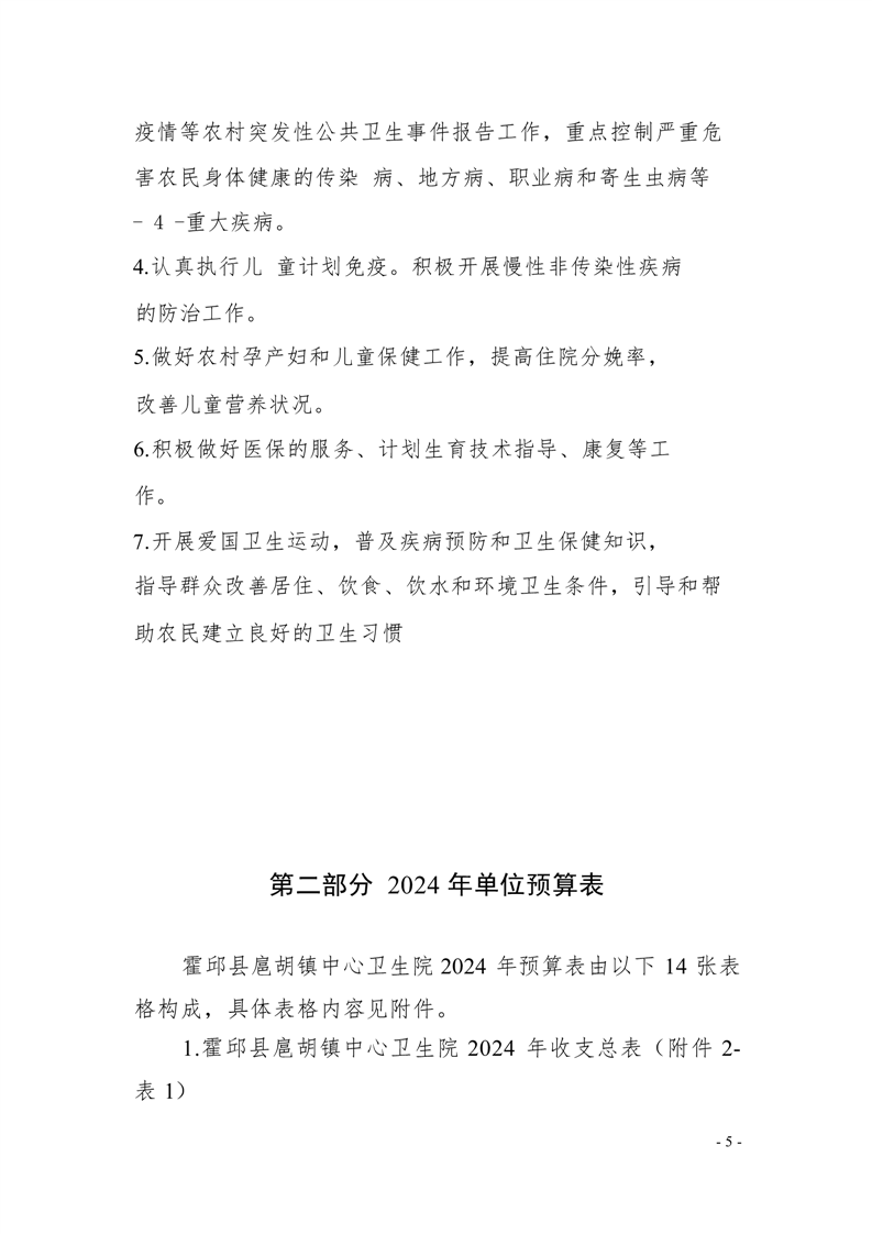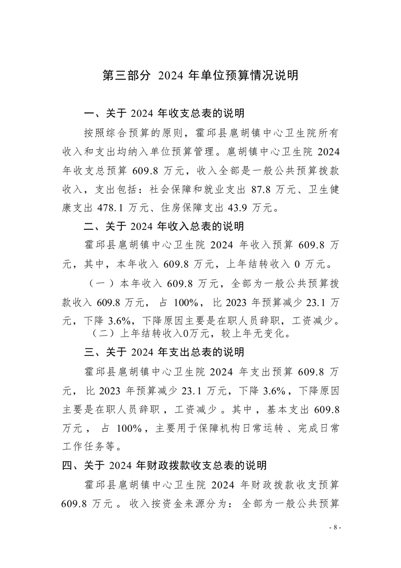 霍邱县扈胡镇中心卫生院2024年单位预算公开