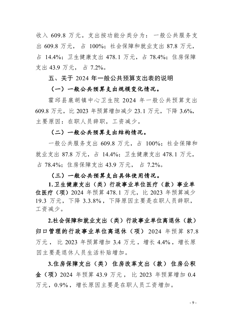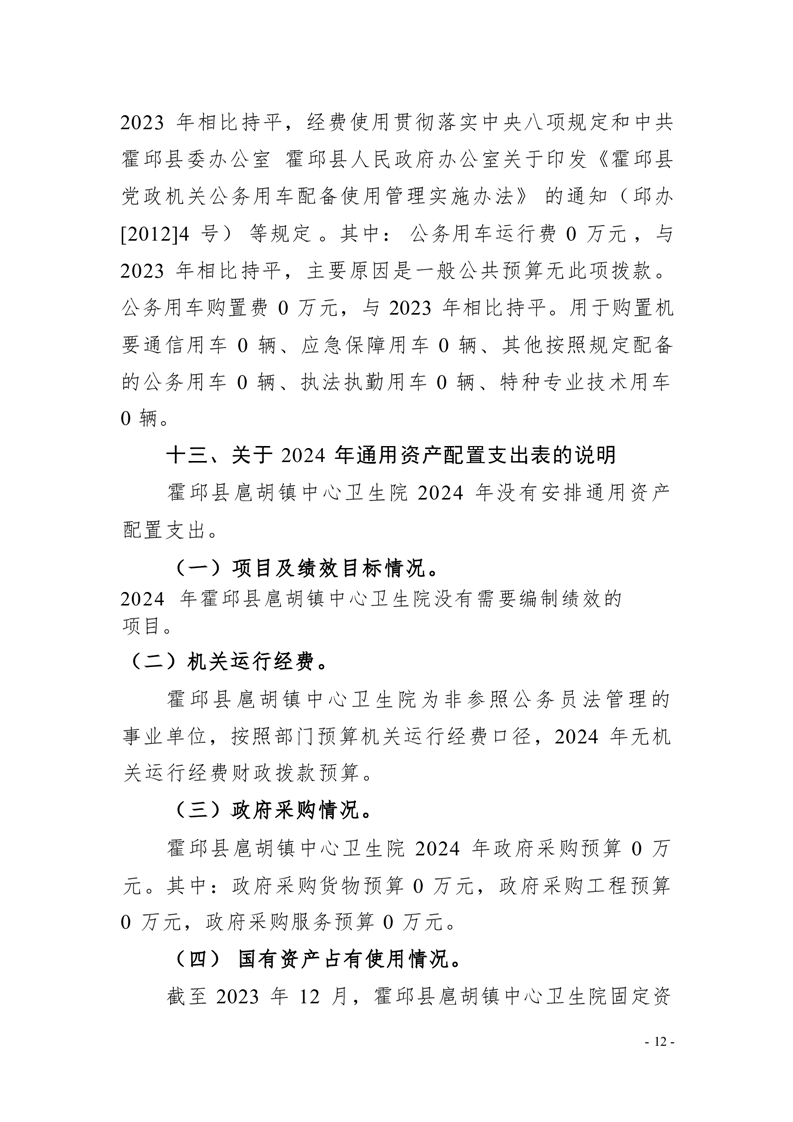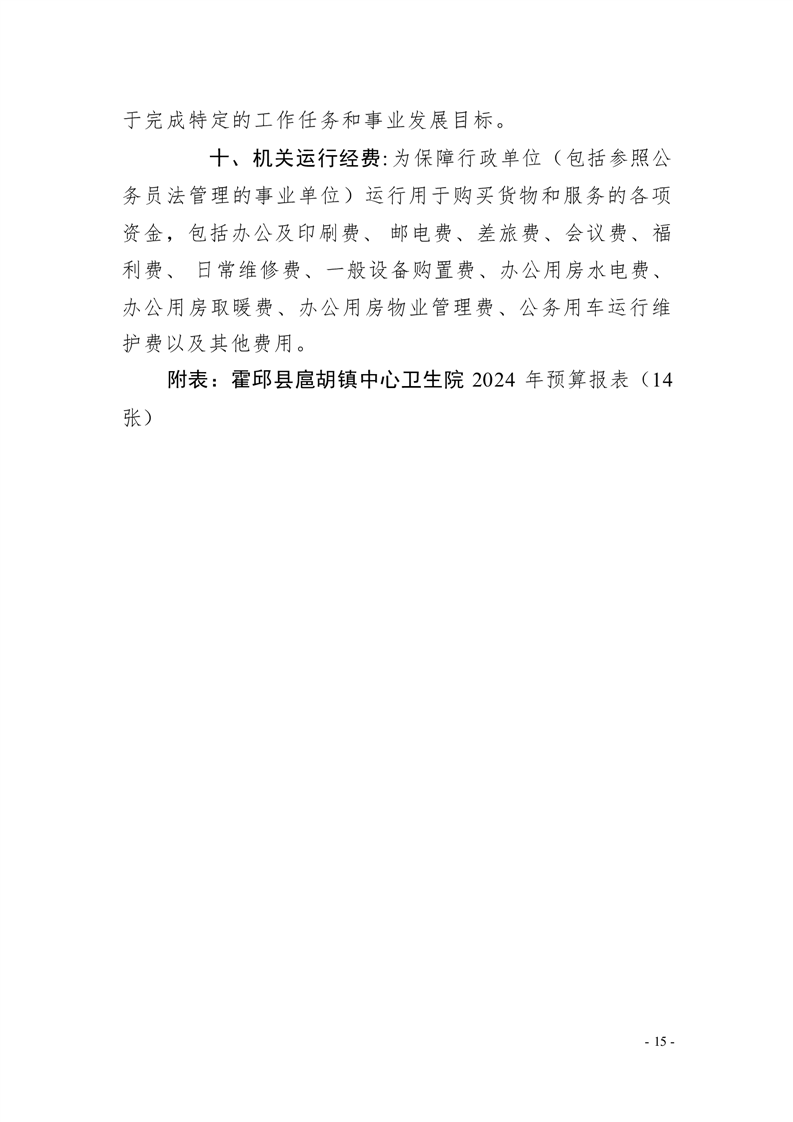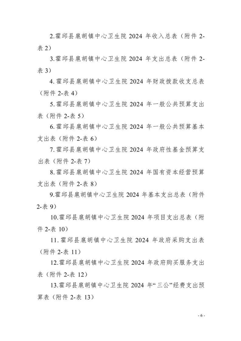 霍邱县扈胡镇中心卫生院2024年单位预算公开