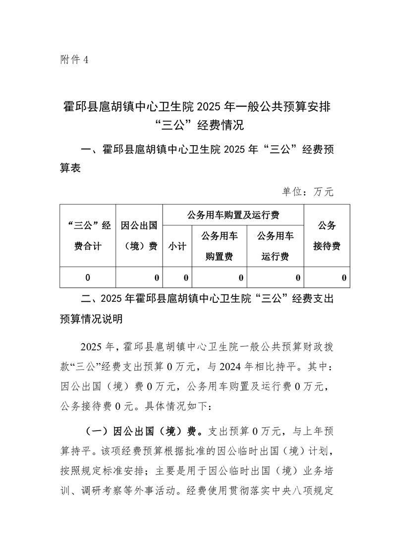 霍邱县扈胡镇卫生院2025年部门单位一般公共预算安排“三公”经费情况公开