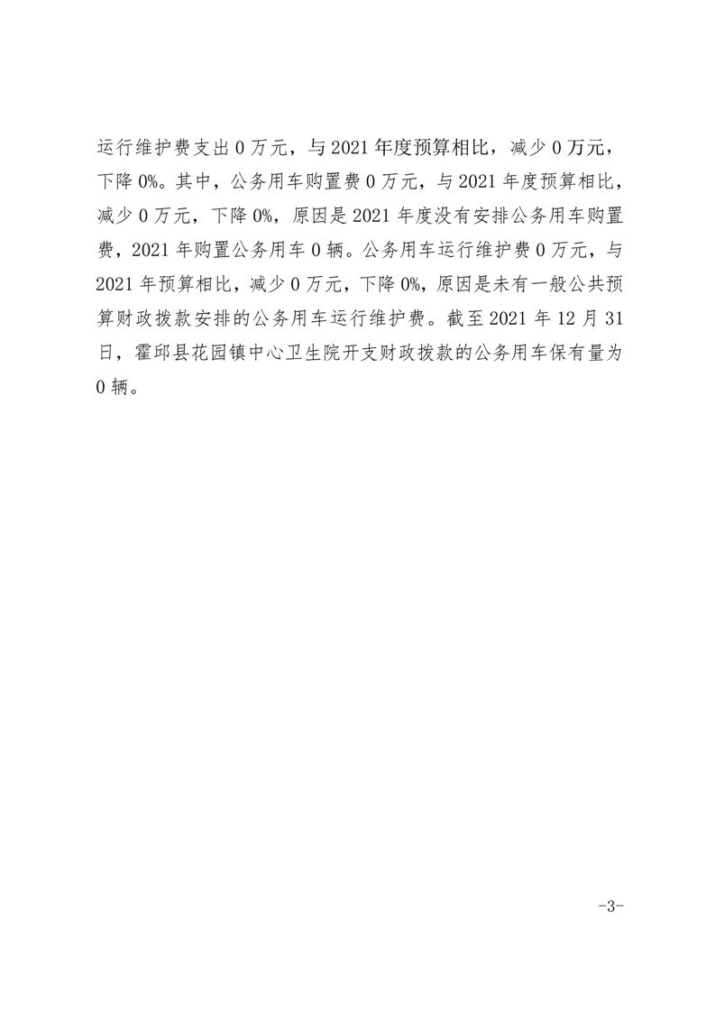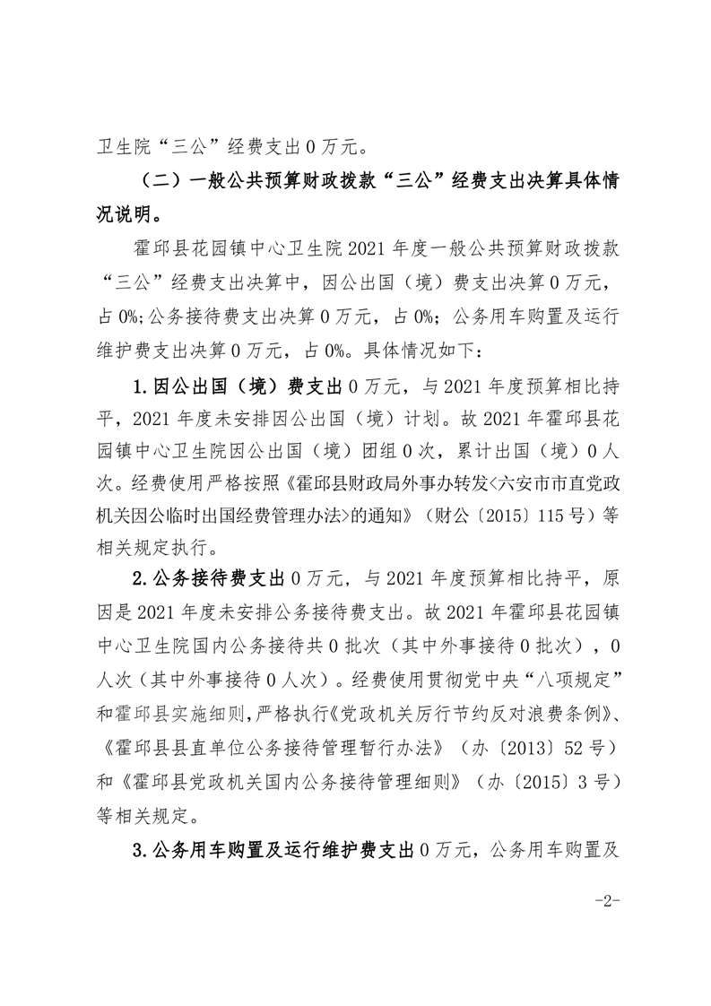 霍邱县花园镇中心卫生院2021年度一般公共预算财政拨款“三公”经费支出决算