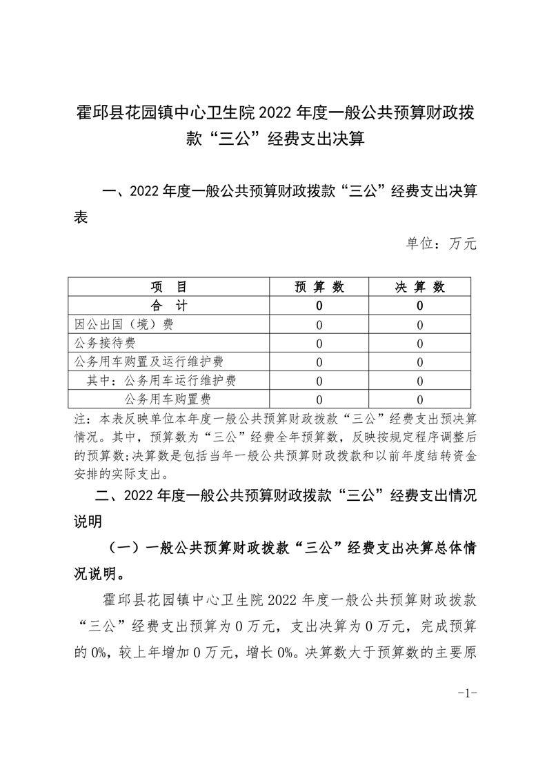霍邱县花园镇中心卫生院2022年度一般公共预算财政拨款“三公经费”支出决算