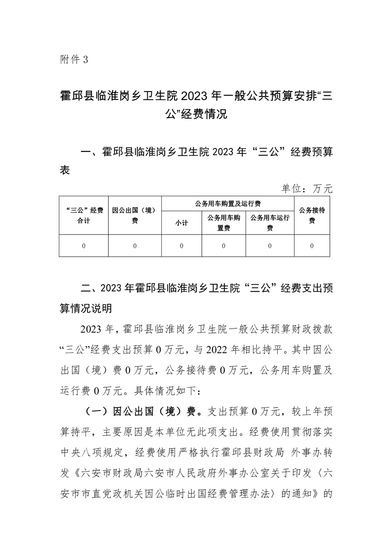 霍邱县临淮岗乡卫生院2023年单位一般公共预算安排“三公”经费情况公开