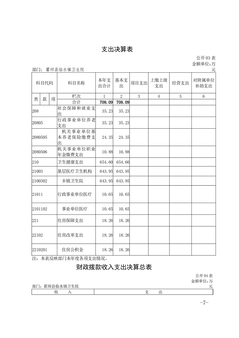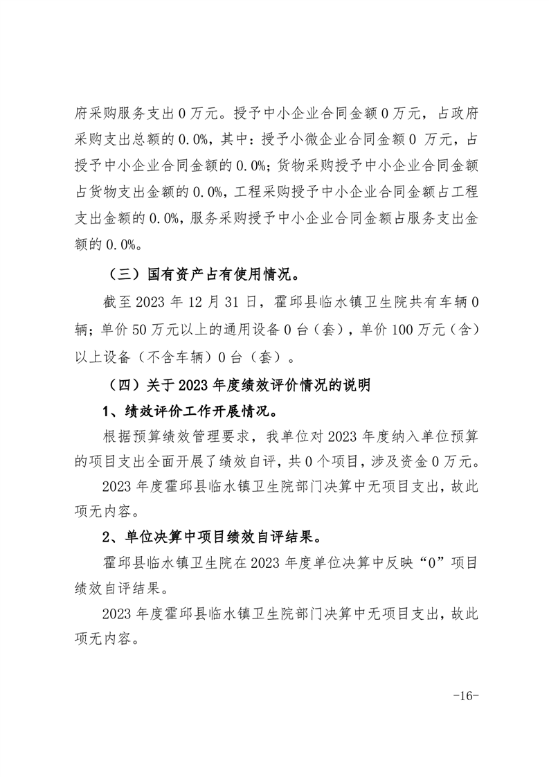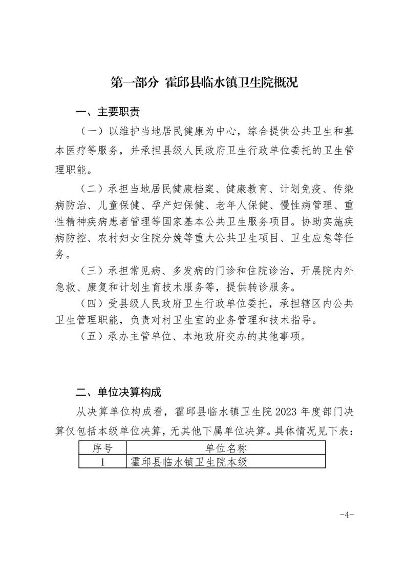 霍邱县临水镇卫生院2023年度决算公开