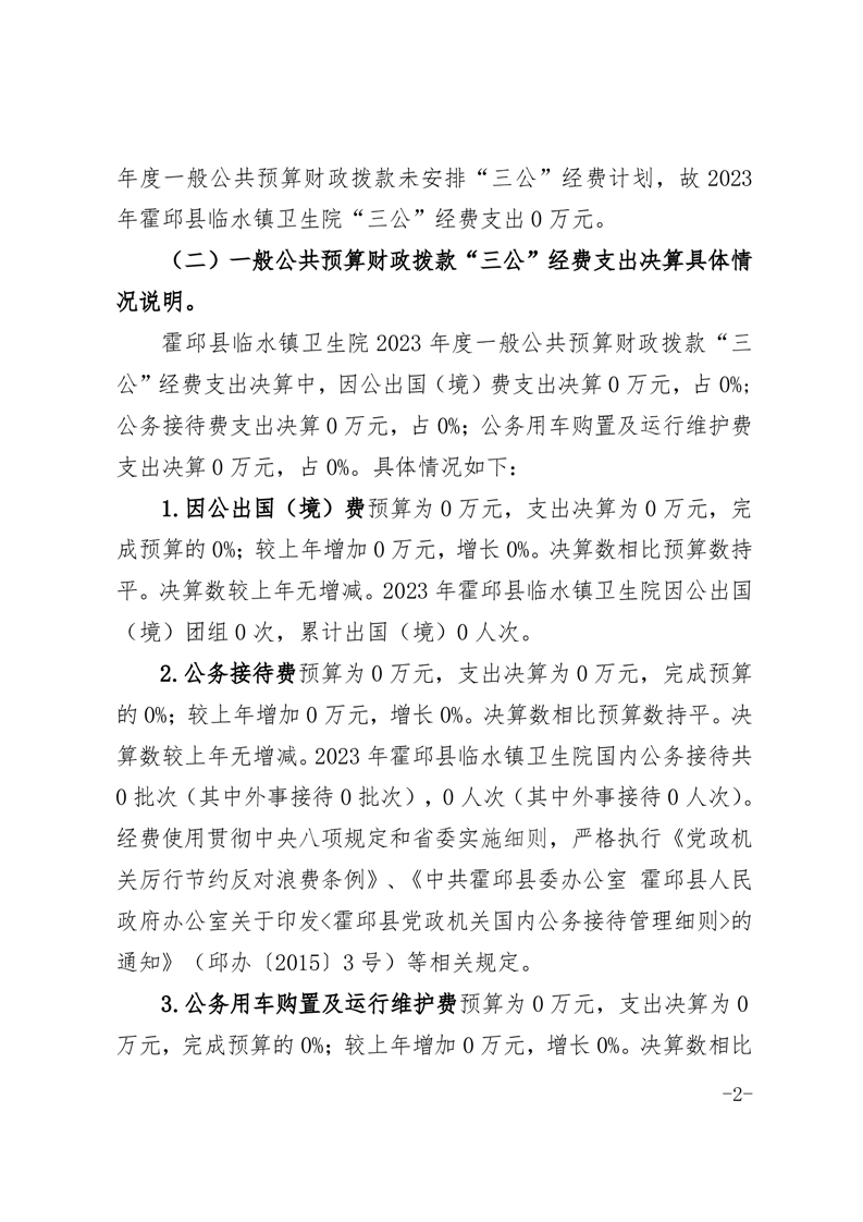 霍邱县临水镇卫生院2023年度一般公共预算财政拨款“三公经费”支出决算